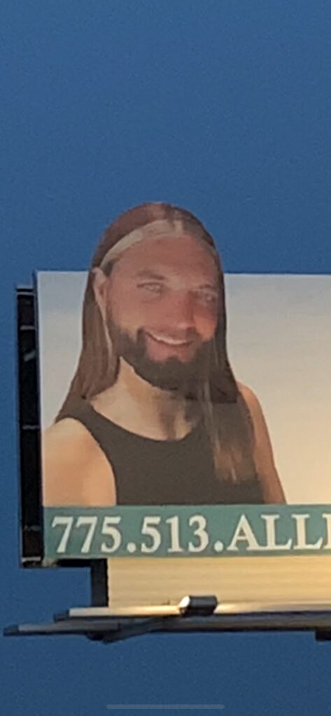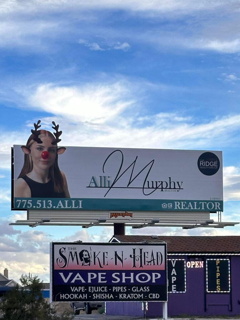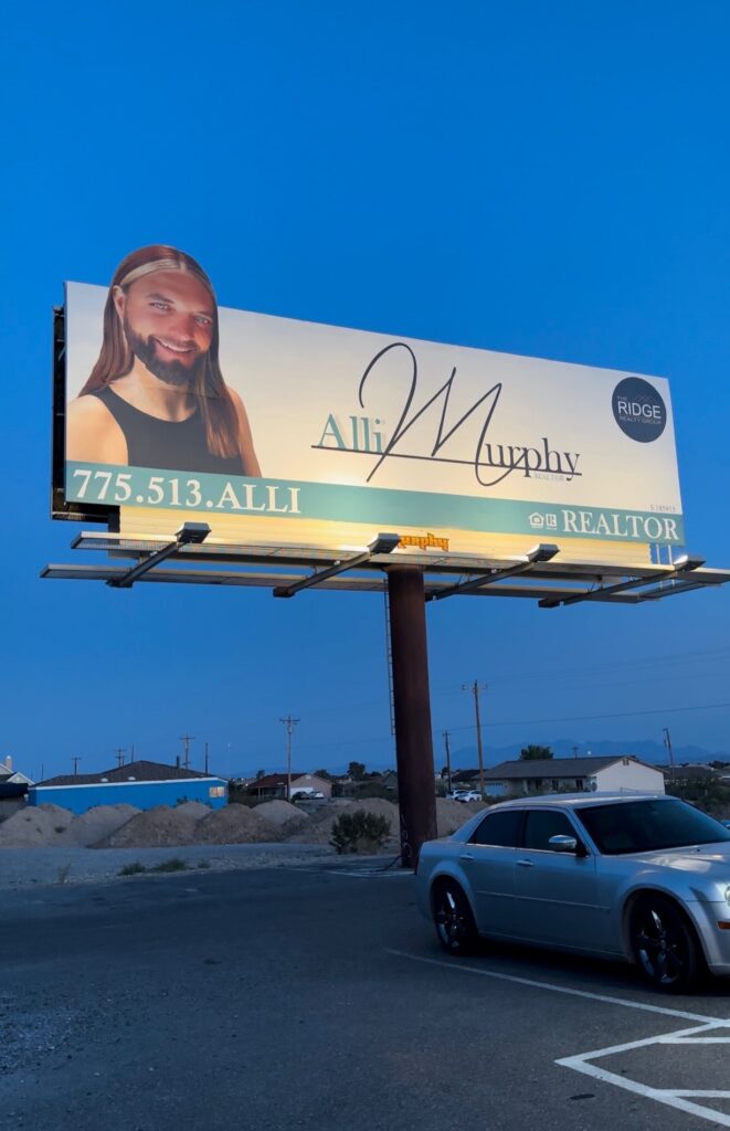 Alli’s roots in Pahrump run deep. Her father, Tommy Murphy, is part of the well-known Murphy family, one of fourteen siblings. He owns a billboard company and works as a home inspector, though Alli chooses not to use his services for ethical reasons. However, her father’s billboard business has provided one of the most talked-about features in town—her ever-changing, often humorous billboard advertisements.