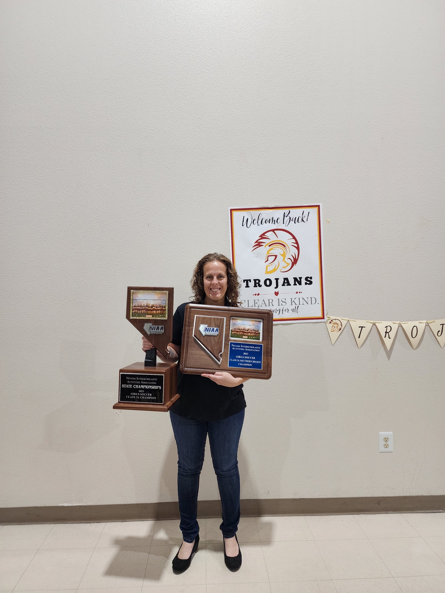 Her professional journey is marked by significant achievements. She recently became a Certified Cooperative Communicator, a rigorous certification process that enhances her expertise in cooperative management and communication. On top of her corporate success, Amy has made her mark in the coaching world. In her first full year coaching girls’ soccer at PVHS, she was named Southern Nevada Coach of the Year by the Nevada Coaches Association, 2023’s State Coach of Year for Nevada, as well as the prestigious Western Region Coach of the Year award for the United States. These accolades, along with a state championship win, are a testament to her dedication to mentoring young athletes. “I really wasn’t expecting it,” she shared.