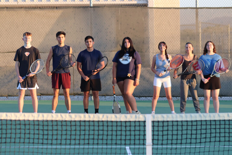 At Pahrump Valley High School, the tennis program is more than just a sports team; it’s a family. Head Coach Michael DelaRosa, who has been at the helm for five years, brings a wealth of experience and a passion for the game that has transformed the tennis program. Coach DelaRosa, known for his patient and methodical coaching style, has high hopes for this season, emphasizing sportsmanship, teamwork, and the pursuit of excellence.