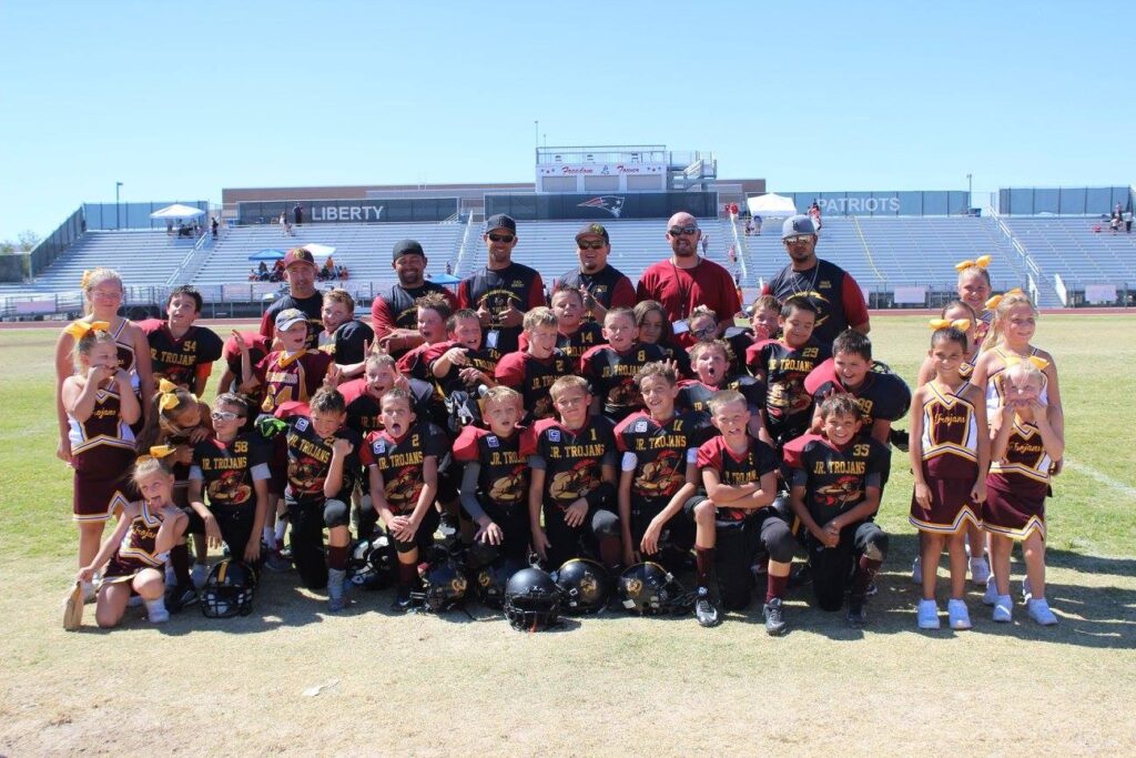 In 2011, Ray took on head coaching duties for both wrestling, originally called Powerhouse Wrestling Club, and football, and by 2013 he was leading youth sports teams known as the Pahrump Jr. Trojans. This name change, Gunner explained, was intentional: “He wanted these kids who were beginning their athletic journeys young to be Trojans from the beginning of their career until the end when they would join the Pahrump Valley High School Trojans.” By setting this vision, Ray helped to unify the community’s sports programs, creating a sense of pride and continuity among players as they grew up.