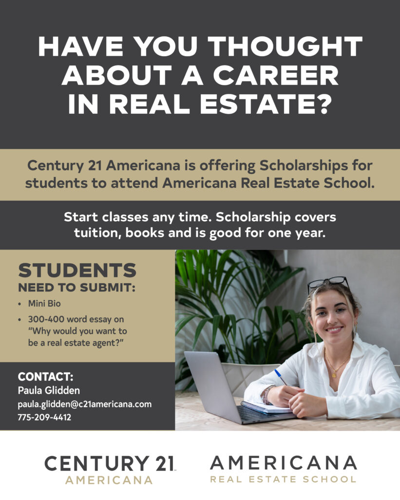 Students or families looking for more information about the scholarship can contact Paula Glidden at paula.glidden@c21americana.com or by phone at 775-209-4412.
