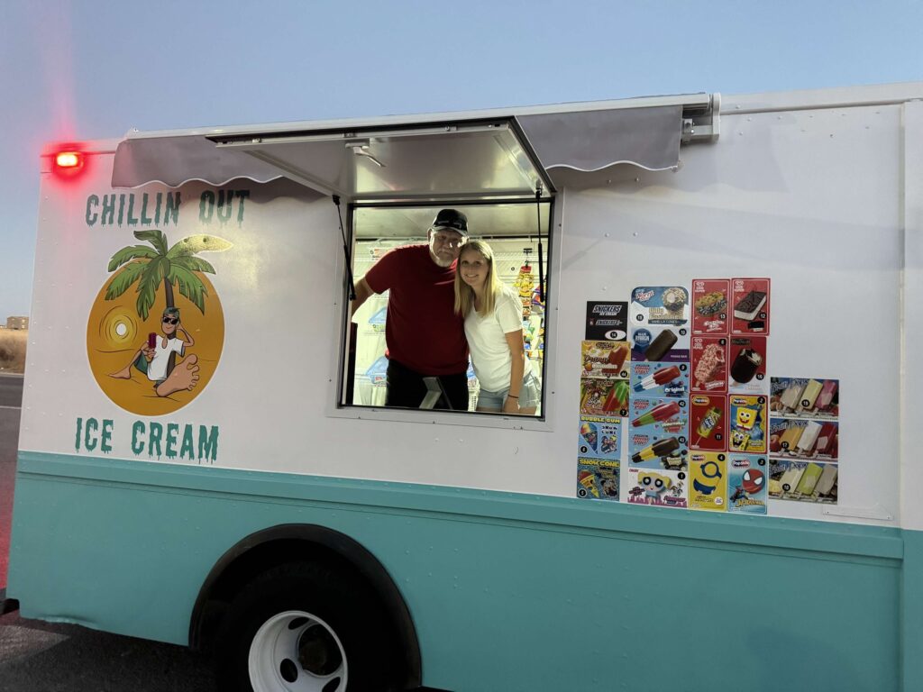 The idea for the ice cream truck was born from Jim’s desire to introduce something different to the community. “Jim wanted to start this ice cream truck business for something new for the community to experience, also to give the kids something to be excited about,” Oleta explains. The response has been overwhelmingly positive, with the community embracing the truck’s presence and the happiness it brings.