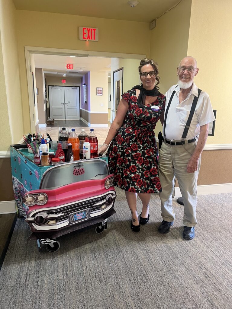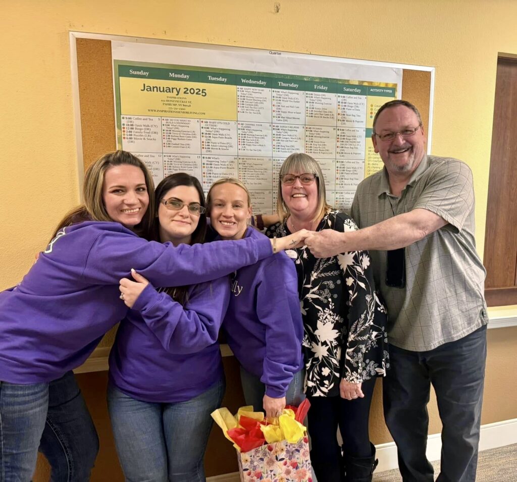 At the heart of Danielle’s work is a fierce dedication to her residents. She becomes emotional when talking about them, describing them as her “other grandparents.” That bond became especially personal when her own grandfather moved into Inspirations. Being able to care for him until his passing, and to be there with him morning, noon, and night, was a profound experience she considers one of the greatest gifts of her life. For Danielle, the job has never been just about management—it’s about showing up for people, listening to their stories, and creating an environment where they feel seen, valued, and loved.