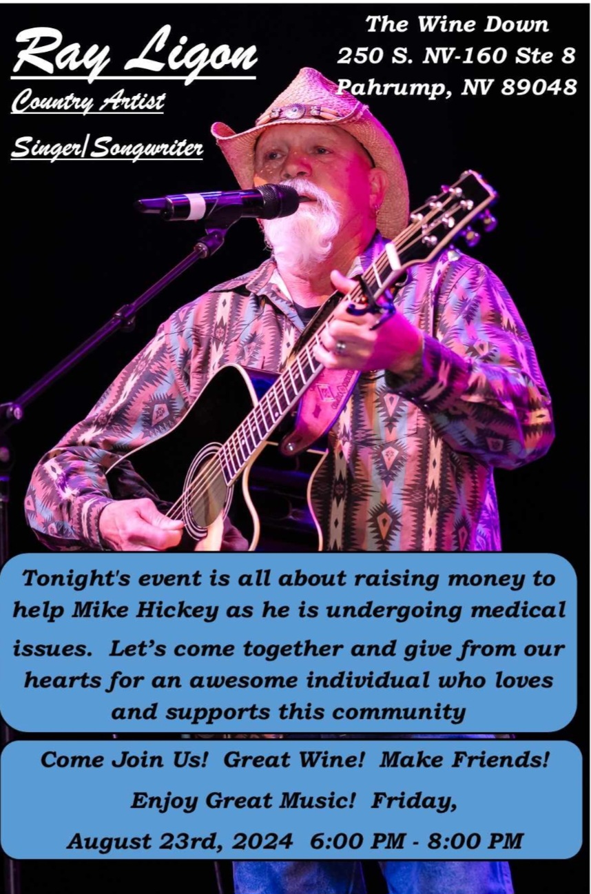 The Wine DownRay Ligon, Country Artist singer/songwriter will provide live entertainment at this fundraising event for Mike Hickey. The proceeds will help to cover medical costs.
