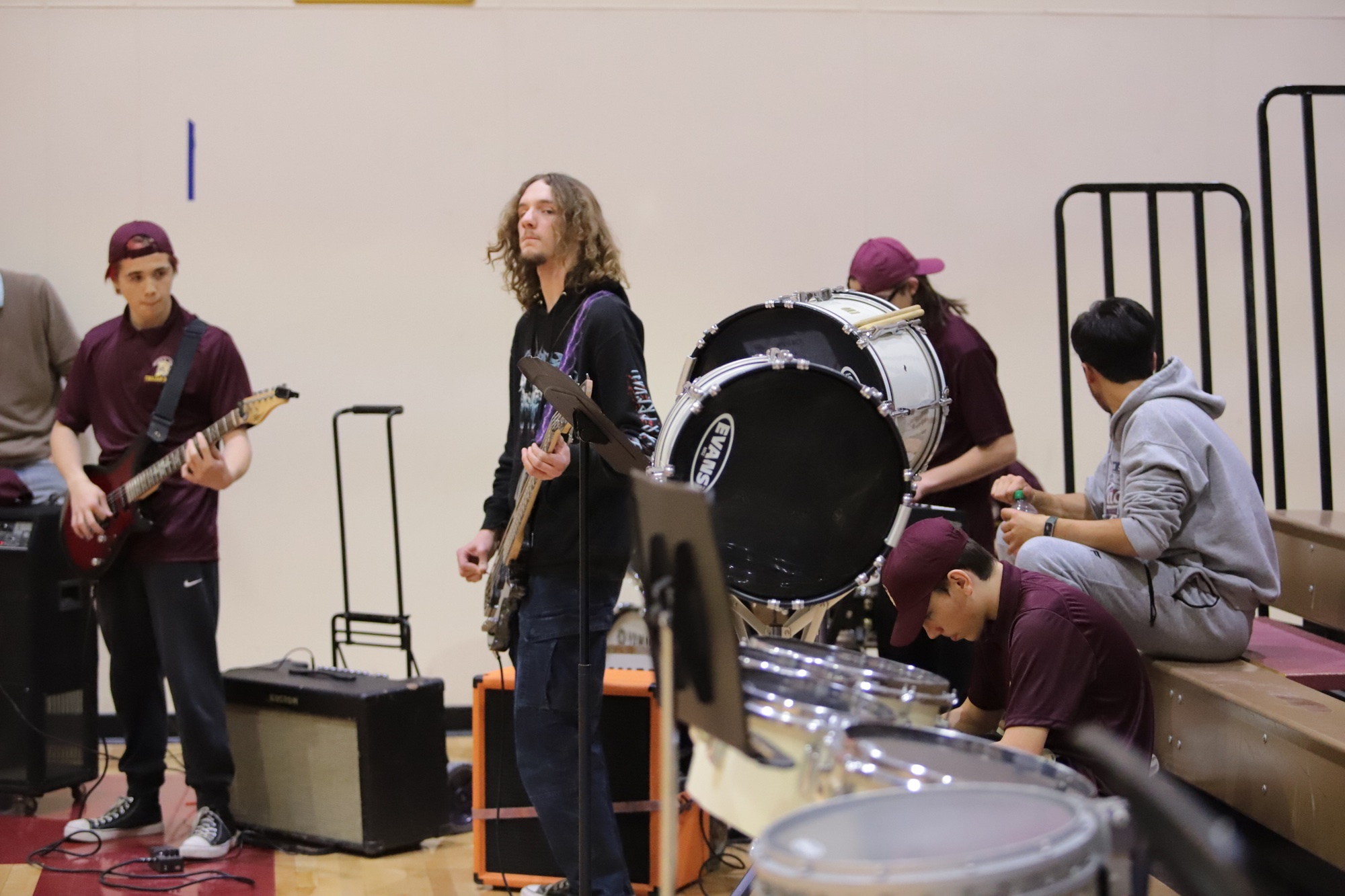 The Pahrump Valley High School boys’ basketball game on Monday night, December 9, had more than just athletic excitement — the PVHS Garage band took the stage, bringing live music to halftime. Known as “Garage the Band” outside of school, the group delivered an electric performance of Panic! At The Disco’s “I Write Sins Not Tragedies,” captivating the audience and adding to the game-night energy.