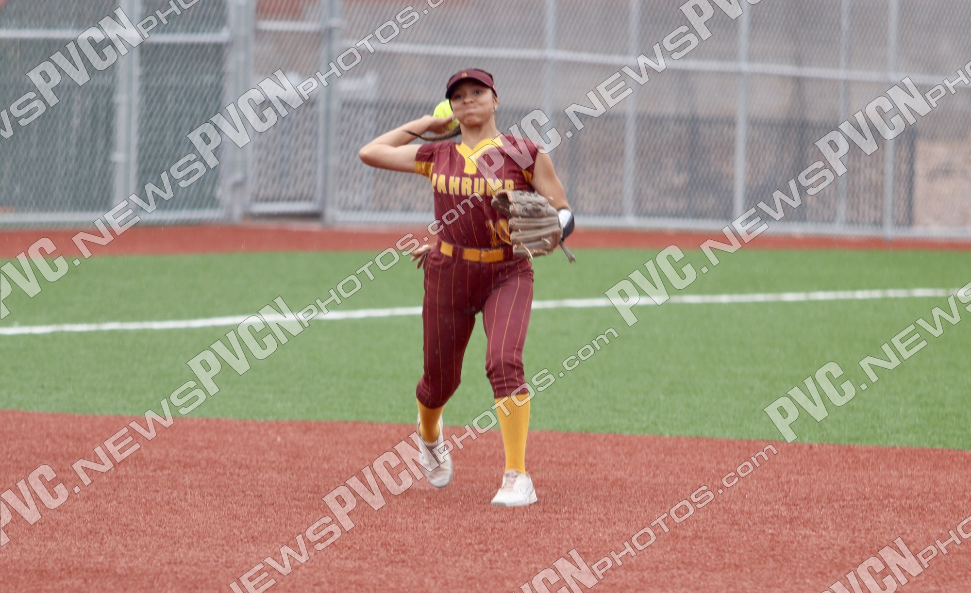 Virgin Valley chipped in a run in the bottom of the third, but Pahrump’s defense held strong, with Chiancone and Saldaña making key plays to limit further damage. In the top of the fourth, Chiancone walked and advanced on a hit by Freeman. Colon also walked, and Cox-Hosino was hit by a pitch, loading the bases once again. While Sunday Colon was thrown out at home on a fielder’s choice, Saldaña was hit for a third time—drawing an umpire check for safety—and Madison Rodriguez delivered a hard hit down the third base line to bring in another run. Saldaña later stole home on a passed ball, and Denton and Chiancone both added walks to keep the pressure on. By the end of the inning, the Trojans were comfortably ahead 16-4.