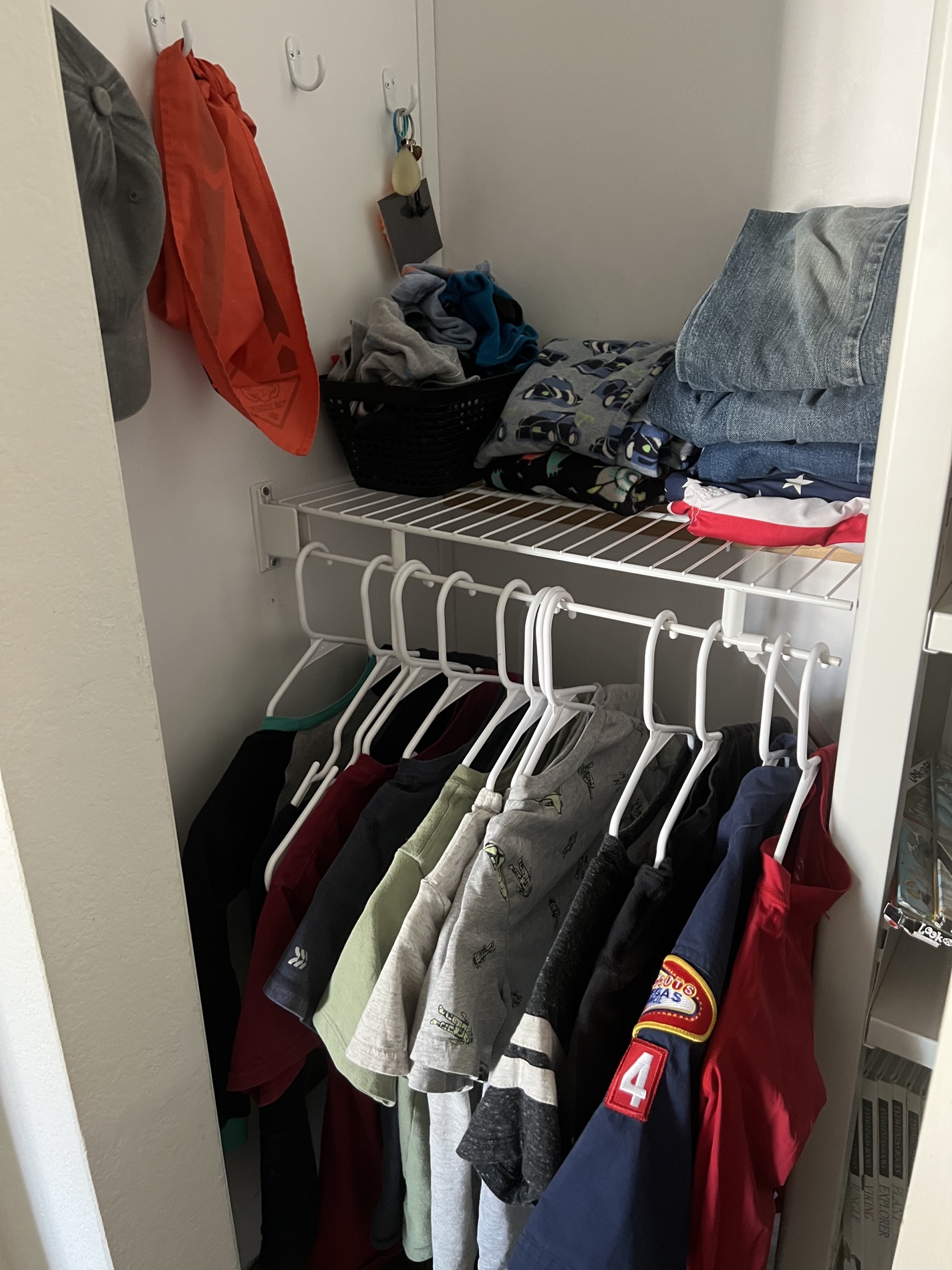 These small wardrobes only work if you’re doing laundry frequently, which means it won’t have time to build into an overwhelming multiple load monster. If you’re only planning on doing laundry once a week, adjust the amounts of clothes each kiddo keeps. The goal is to have enough that you can skip a couple days of laundry if something comes up, but not so much you can ignore it ’til the pile covers your entire bed.