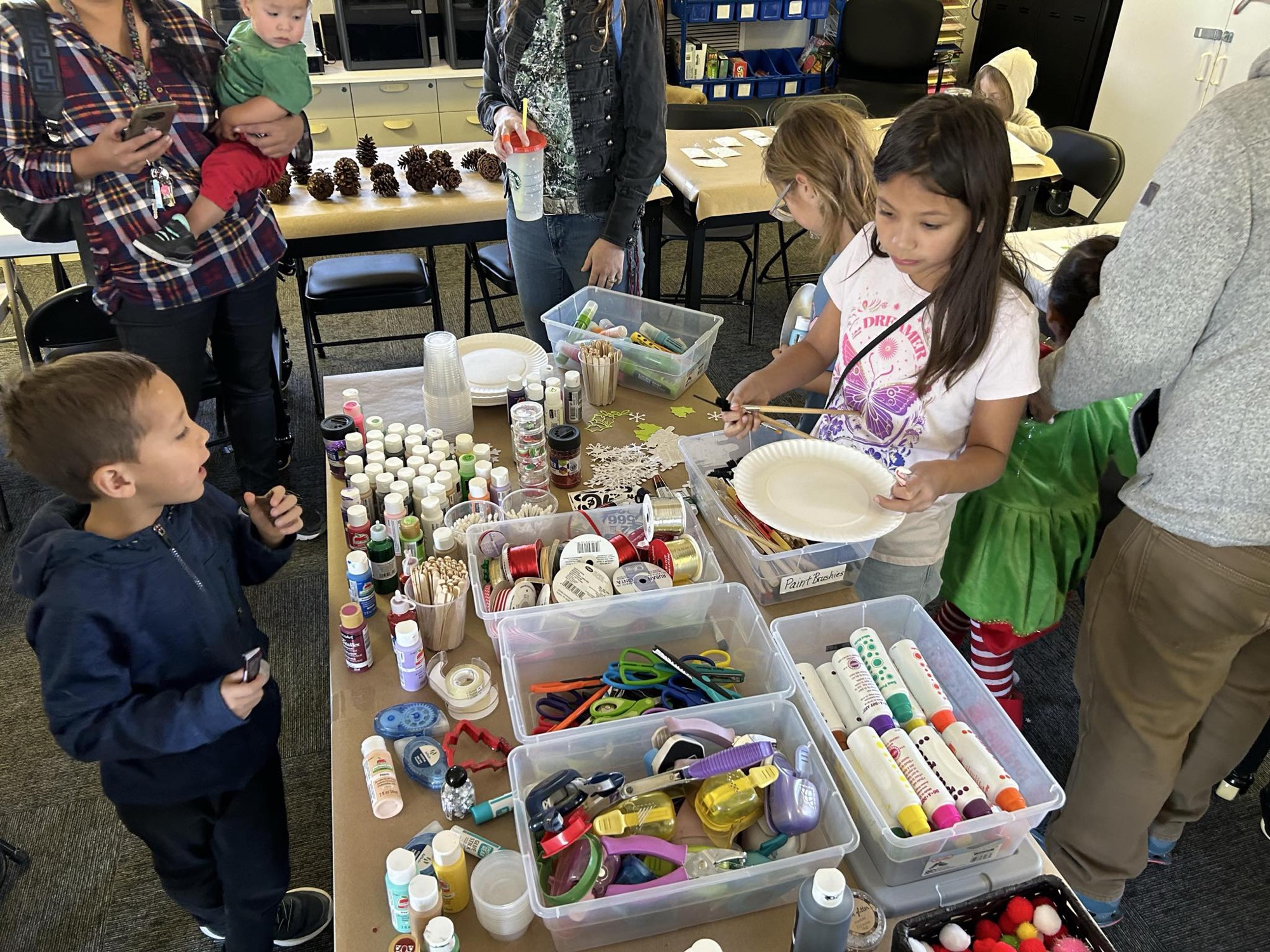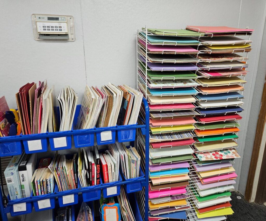 “If you can create with it, we probably want it,” Charli says with a laugh. “We’ve had people donate fabric, yarn, acrylic paint, stamps, even old CDs. Instead of throwing things away, we find creative ways to repurpose them or we put them on our “Take me Home” cart so others can take supplies for free.”
