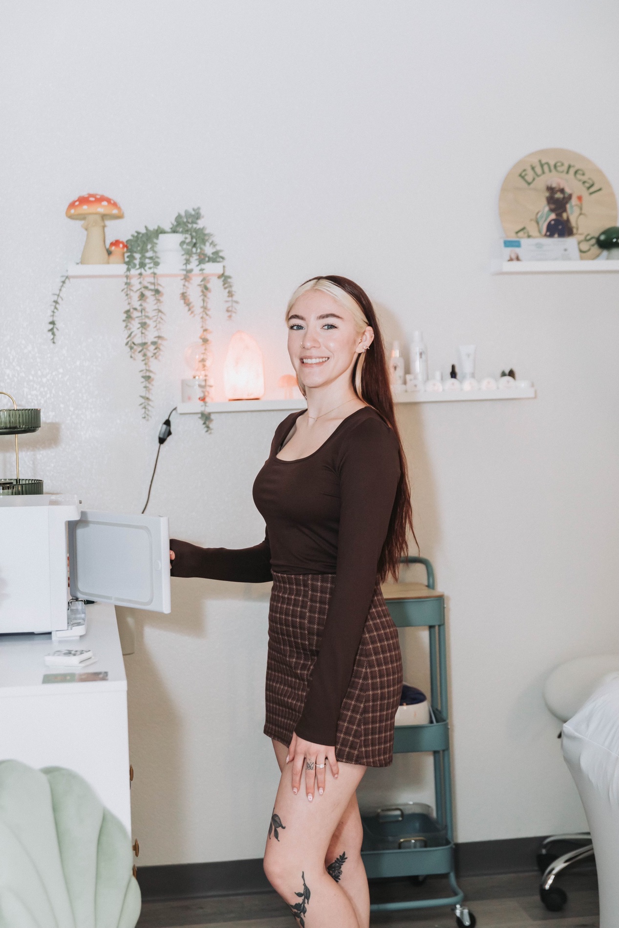 As for continuing education, Olivia is always learning—whether it’s through online courses, watching mentors on TikTok, or revisiting her Aveda training materials. While additional certifications are required for some services like lash extensions and dermaplaning, other continuing education is optional but encouraged. “You have to keep your brain refreshed,” she said. “This industry changes fast. And you can really mess up someone’s skin if you’re not careful.”