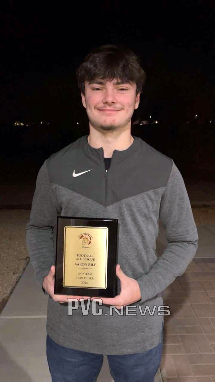 On defense, Randy Murray and Iyan Bosket were integral to the team’s success, both earning 1st Team All-League and 2nd Team All-State honors. The defensive line saw outstanding contributions from Matt Lopez, William Sparks, and Hunter Mellinger, who were all named to the 2nd Team All-League, while Austin Alvarez and Rhett Swaner earned 2nd Team honors as defensive backs. Honorable mentions went to Aydon Veloz, Lucas Gavenda, Jack Walker, and Josh Slusher for their versatility and defensive prowess. Aaron Rily received 2nd Team All-League honors as a kicker, consistently delivering key points for the team.