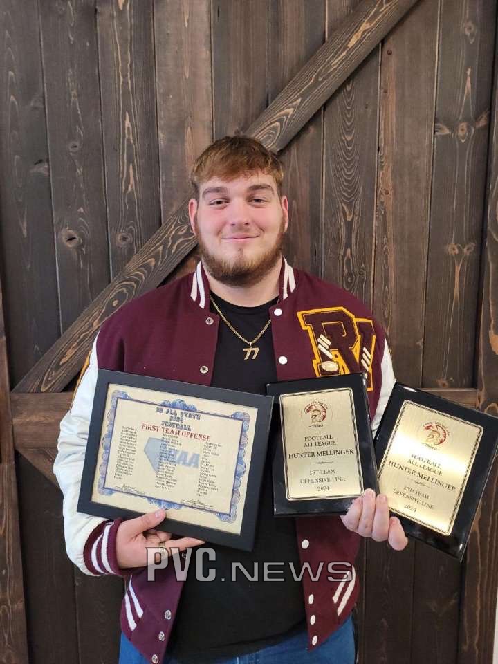 The PVHS football team had a remarkable year with strong representation in the Southern 3A Mountain Division awards. On offense, Hunter Mellinger and Matt Lopez dominated the line, earning 1st Team All-League honors. Mellinger went on to receive 1st Team All-State recognition, while Lopez earned 2nd Team All-State honors. Running back Austin Alvarez was named 1st Team All-League and 2nd Team All-State for his standout performances. Quarterback Kayne Horibe earned 2nd Team All-League as a quarterback and honorable mention as a punter. Wide receivers Randy Murray and Ethen Hutchinson were recognized, with Murray earning 2nd Team All-League and Hutchinson receiving honorable mention.