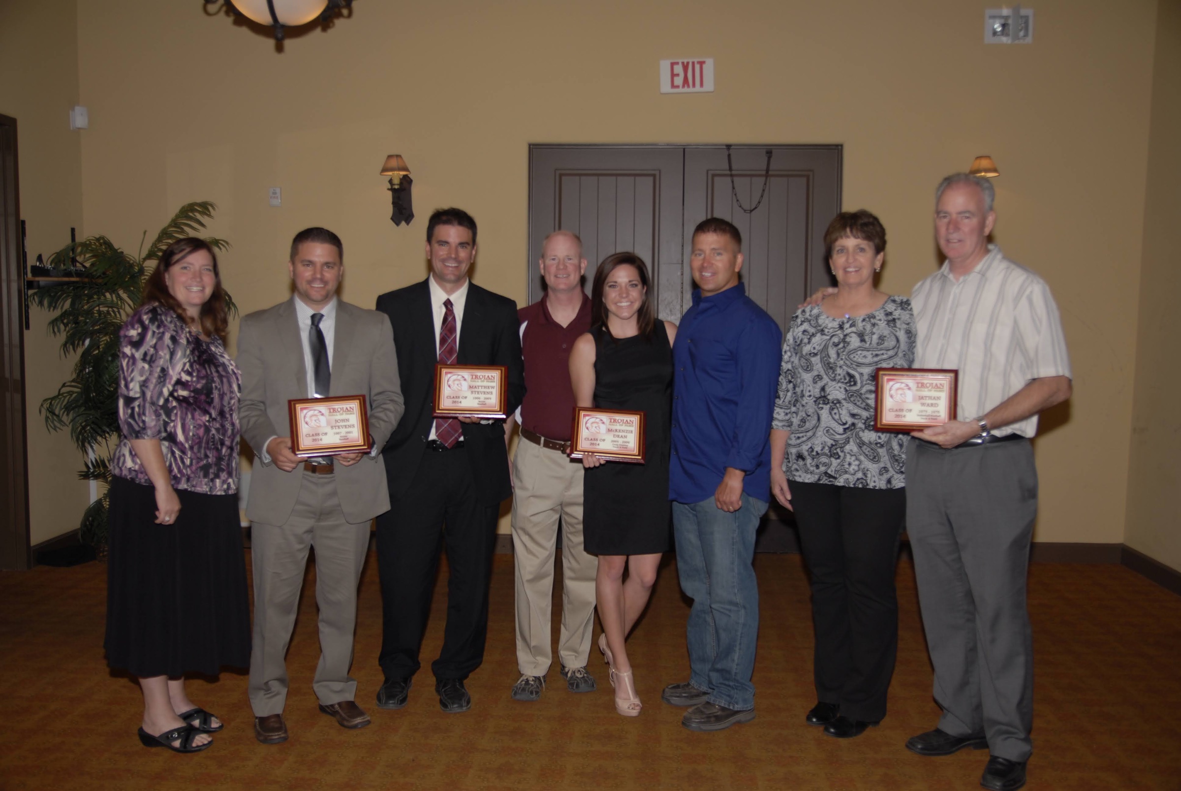 Trina Daffer, John Stevens, Matt Stevens, Jason Odegard, McKenzie Dean, Craig Reiger, Janelle (Ward) Veloz and Jathan Ward – 2014 induction dinner