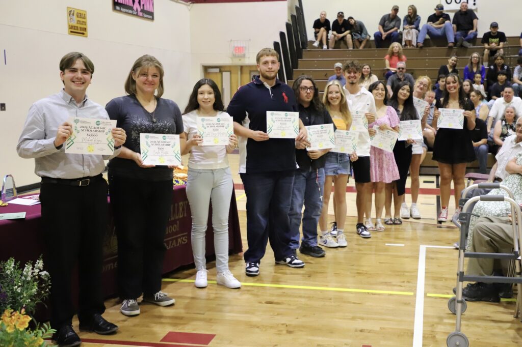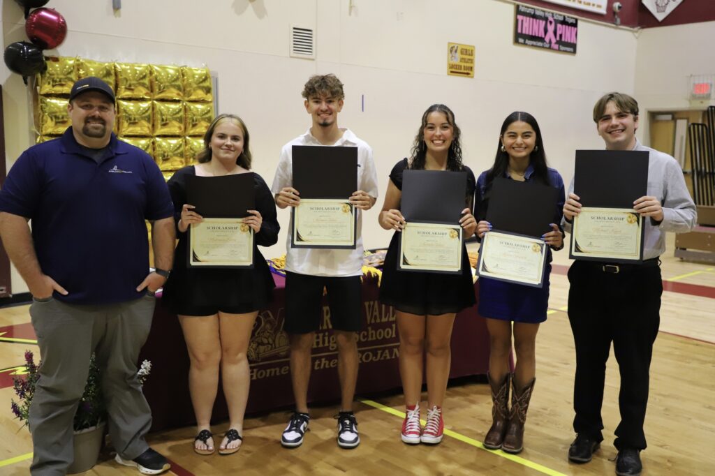 Valley Electric Association awarded a range of scholarships: Michael Keyes and Sasha Strain received $2,000 each; Adriana Amador and Analise Veloz received $1,500 each; Jesse Araujo, Jordan Onigkeit, Abigail Hull, Anthony Hunt, and Antonio Veloz were awarded $1,000 each; and Carlee Barton and Cybel Cruz-Martinez each received $500. Amy Carlson also presented the Pahrump Jr. Trojans Soccer Club awards to Khylar Park and Madison Mendenhall ($2,000 each), Adriana Amador ($1,500), Analise and Antonio Veloz ($1,000 each), and Valery Romero and Erick Becerra ($500 each).