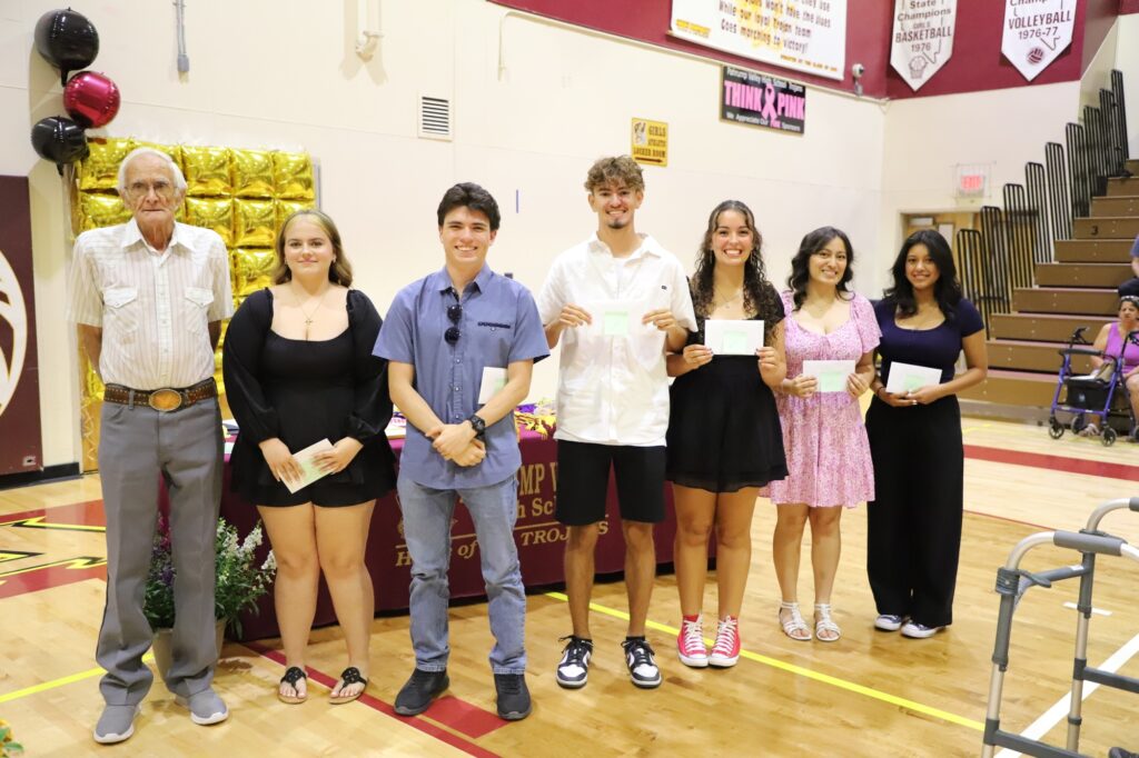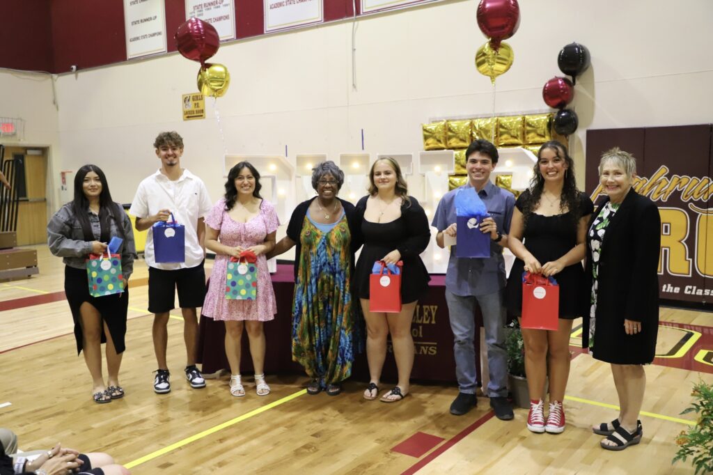 Mr. Carl Miller presented the Patricia Miller Memorial Scholarship to Gianni Ayala, Makenzie Eaton, Alejandra Abarca-Franco, Abigail Hull, Antonio Veloz, and Analise Veloz. The Martin Luther King Scholarship, presented by CJ Byron and Doré Foskey, was awarded to Makenzie Eaton, Abigail Hull, Antonio Veloz, Adriana Amador, Gianni Ayala, and Analise Veloz.