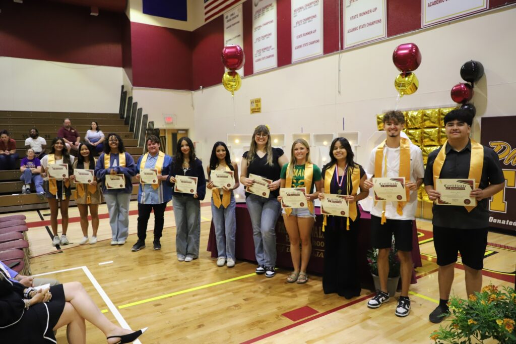 Student Council cords went to Wolfe Beckley, James Dela Rosa, Jocelyn Iniguez, Michael Keyes, Jordan Onigkeit, Angelina Valdez, Aurora Whitney, and Aliana Zuniga. Four-year medals were presented to James Dela Rosa, Michael Keyes, and Angelina Valdez.