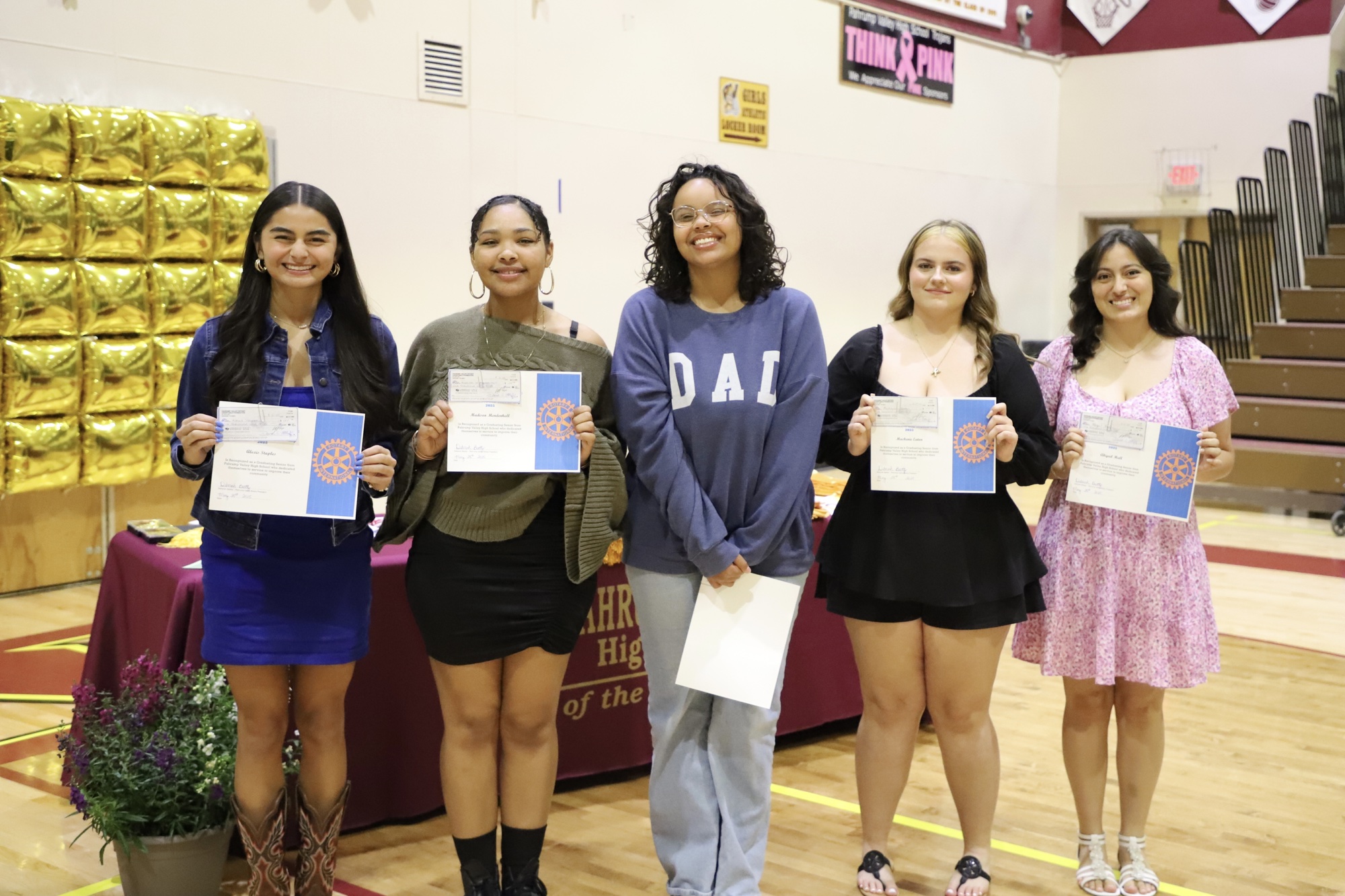 Tamalyn Taylor presented the Southern Nye County Conservation District award to Adriana Amador. The Rotary Club of Pahrump recognized five students with scholarships: Shaianne Sparkman, Madison Mendenhall, Alexis Staples, Abigail Hull, and Makenzie Eaton. The Desert View Hospital Community Scholarship, presented by Ryan Muccio, awarded Anthony Hunt, Abigail Hull, Adriana Amador, with Michael Keyes winning the largest scholarship at $2000.