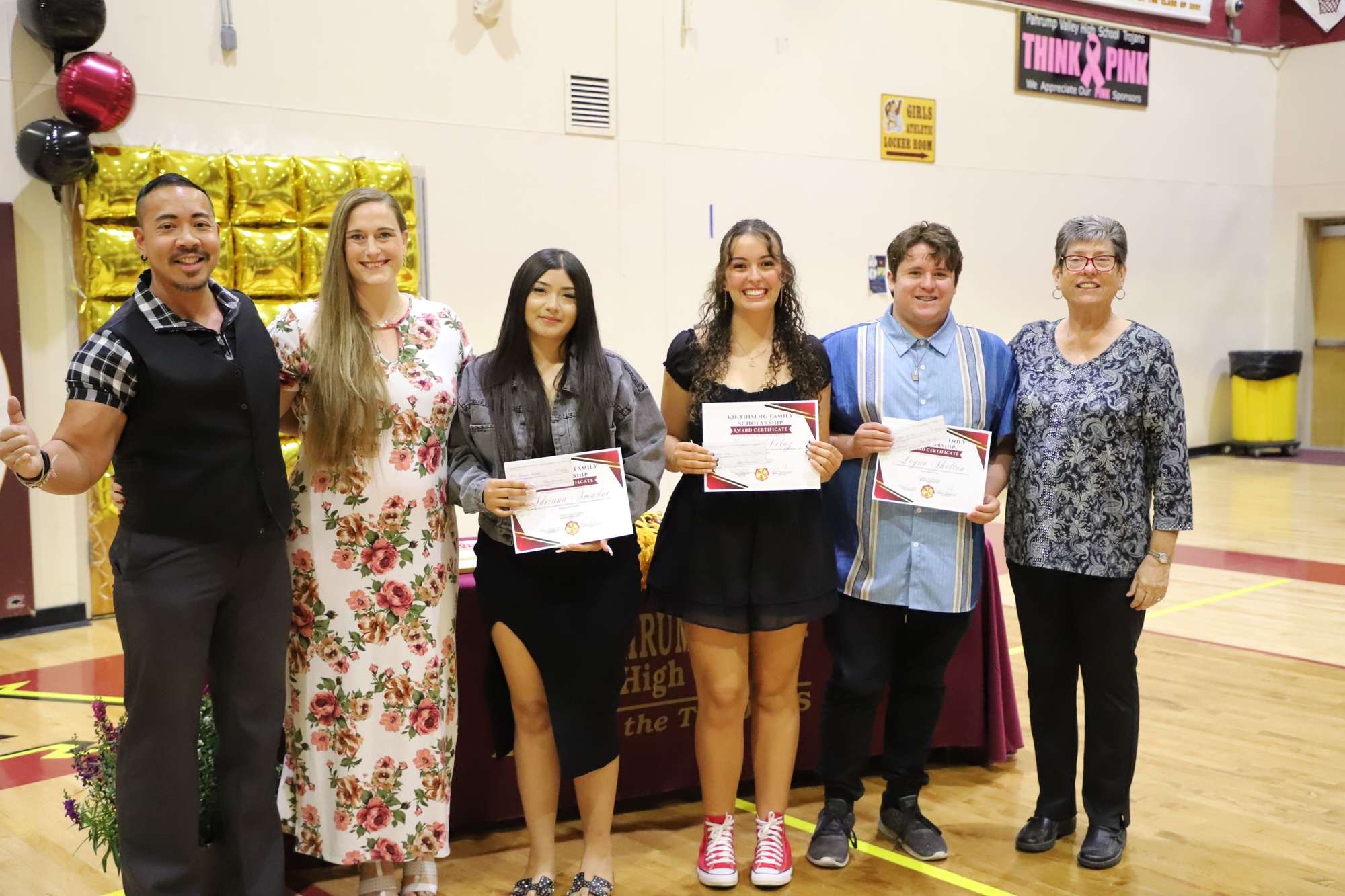 Joe Veloz presented the McKinney-Vento Scholarship to Ashlon Stewart, while Dave Harris presented the Dr. Geraldine Harge Community Service Award to Alexis Staples. Harris, alongside Mike Abbiss, also presented the Kiwanis Club of Pahrump Valley Scholarships to Alexis Staples, Aurora Muns, Jordan Onigkeit, and Michael Keyes.