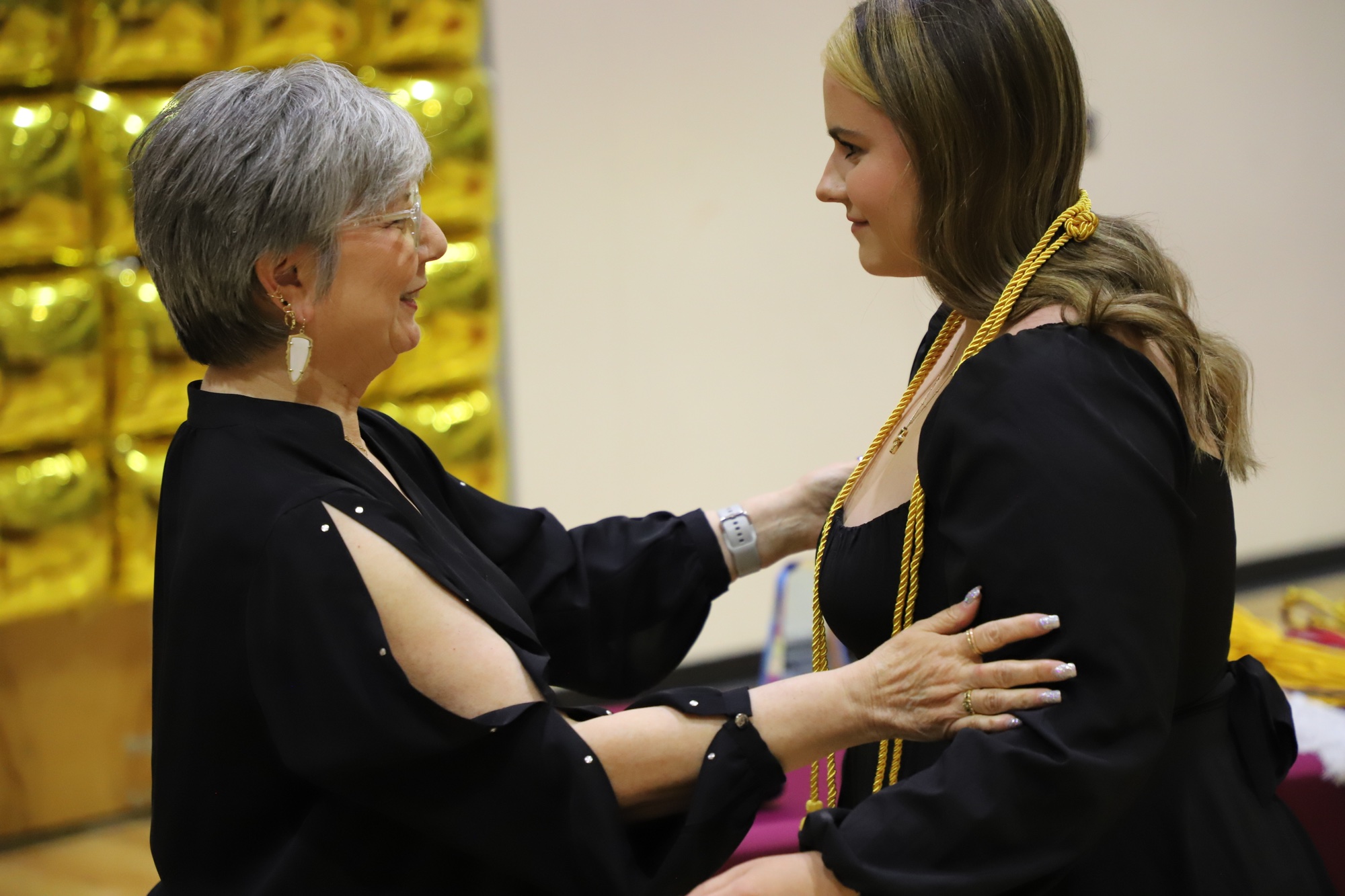 Mr. Curtis presented Yearbook cords to editors Charlotte Ballantine and Bryn Mazlo, with Head Editor cords going to Analise Veloz and Madelynn Boruchowitz. National Honor Society cords were given to Alejandra Abarca-Franco, Abigail Alberto Amador, Wolfe Beckley, Madelynn Boruchowitz, Jemima Chavez, Kaydence (Luka) Farrell-Anderson, Abigail Hull, Christopher George Jacks, Jordan Onigkeit, Alexis Staples, Antonio Veloz, Amanda Wesatzke, Madison Mendenhall, and Carlyn Williams. Officer cords were presented to Gianni Ayala, Angelina Valdez, Analise Veloz, and Michael Keyes.