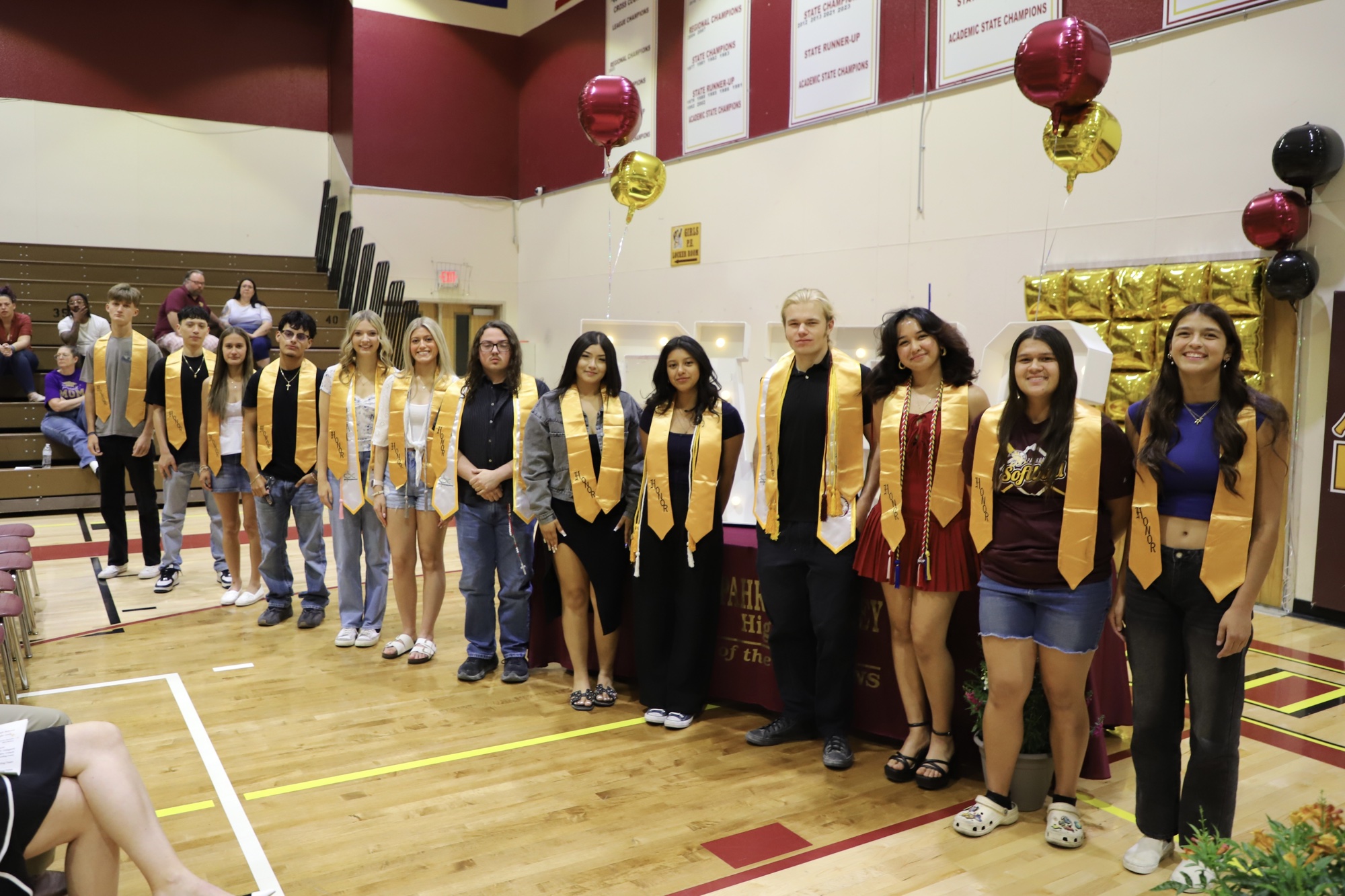 Honors graduate sashes recognized an extensive list of students, including Alejandra Abarca-Franco, Silas Allen, Adriana Amador, Jesse Araujo, Chayla Baang, Charlotte Ballantine, Nash Barnes, Wolfe Beckley, Asia Bell, Madelynn Boruchowitz, Luis Calderon Gomez, Kayleen Carranza, Sergio Carrillo, Joshua Christiansen, Danika Cox-Hosino, Ryleigh Denton, Jasmine DiPreta, Angelle’Keesha Dusich, Liberty Hippach, Abigail Hull, Anthony Hunt, Matthew Lopez, Gracy Macaulay, Emilie Martin, Nivea Moss, Randall Murray, Isaac Norton, Carter Nygaard, Saida Pearson, Valery Romero, Logan Shelton, Shaianne Sparkman, Alexis Staples, Ashlon Stewart, Sasha Strain, Annie Turmelle, Angelina Valdez, Antonio Veloz, Analise Veloz, Lyndsey White, Carlyn Williams, Madison Mendenhall, Matthew Young, Aliana Zuniga, and Andrew Zurn.