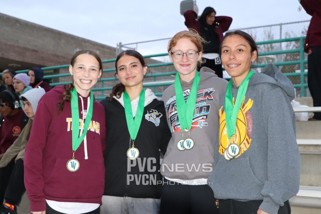 The PVHS relay teams had a strong showing across multiple events. The girls’ 4x800m relay team placed second with a time of 11:59.87. The boys’ 4x800m relay team, consisting of Aydon Veloz, Joaquin Flores, Antonio Veloz, and Ben De Santiago, claimed first place with an impressive time of 8:59.24. The girls’ 4x200m relay team of Jules Ondrisko, Sasha Strain, Payton Weaver, and Diona Nixon secured first place with a time of 1:54.05, while the boys’ 4x200m relay team of James Dela Rosa, Justin Byers, Keegan Freeman, and Ulisses Alvarez also took first, finishing in 1:41.05. The girls’ 4x100m relay team finished second with a time of 54.53, while the boys’ 4x100m relay team, featuring Ulisses Alvarez, Randy Murray, James Dela Rosa, and Eric Figueroa Renteria, finished first at 47.80. The girls’ 4x400m relay team of Sasha Strain, Jules Ondrisko, Addi Nelsen, and Staisha Perry won first place with a time of 4:49.52, and the boys’ 4x400m relay team, composed of Ben De Santiago, Lucas Gavenda, Aydon Veloz, and Antonio Veloz, also secured first with a time of 3:39.95.