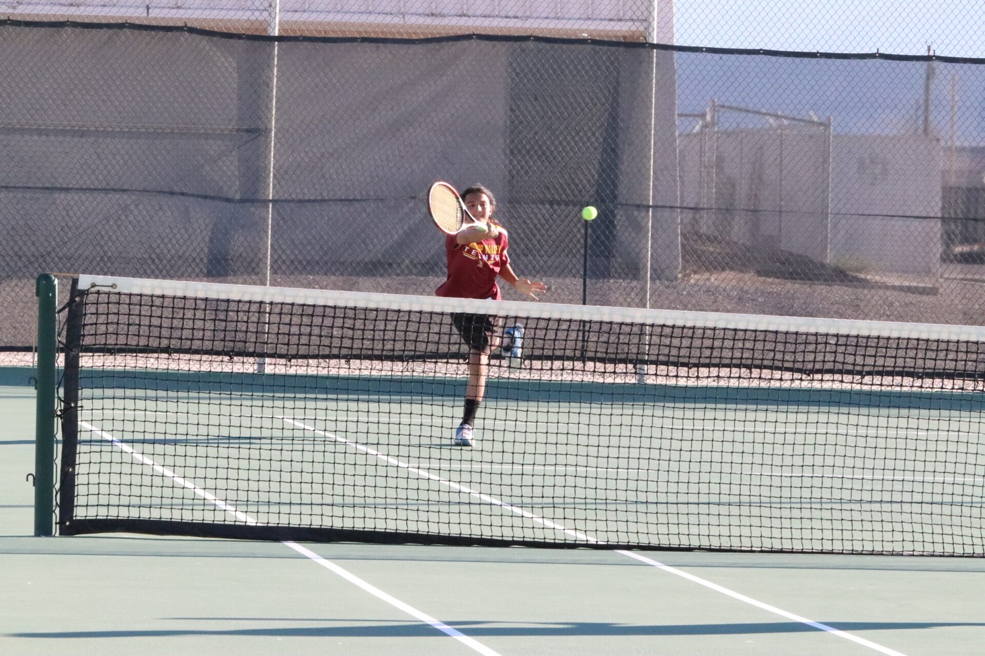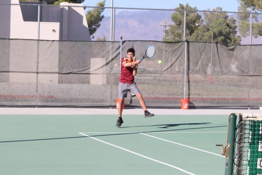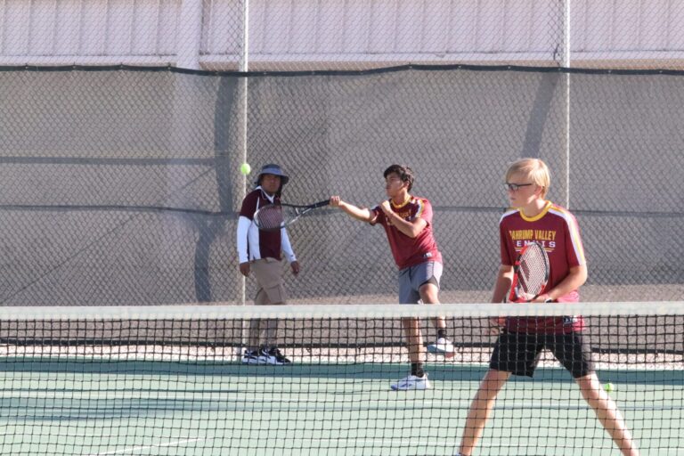 In a thrilling second round of the Class 3A Southern League Boys Tennis Playoffs, the Pahrump Valley High School boys’ tennis team made school history by advancing to the Regional finals and qualifying for state for the first time ever. Facing a tough opponent in Adelson High School, the match was a nail-biter from start to finish, ultimately coming down to a tiebreaker where the Trojans clinched the win with a differential of plus 2.