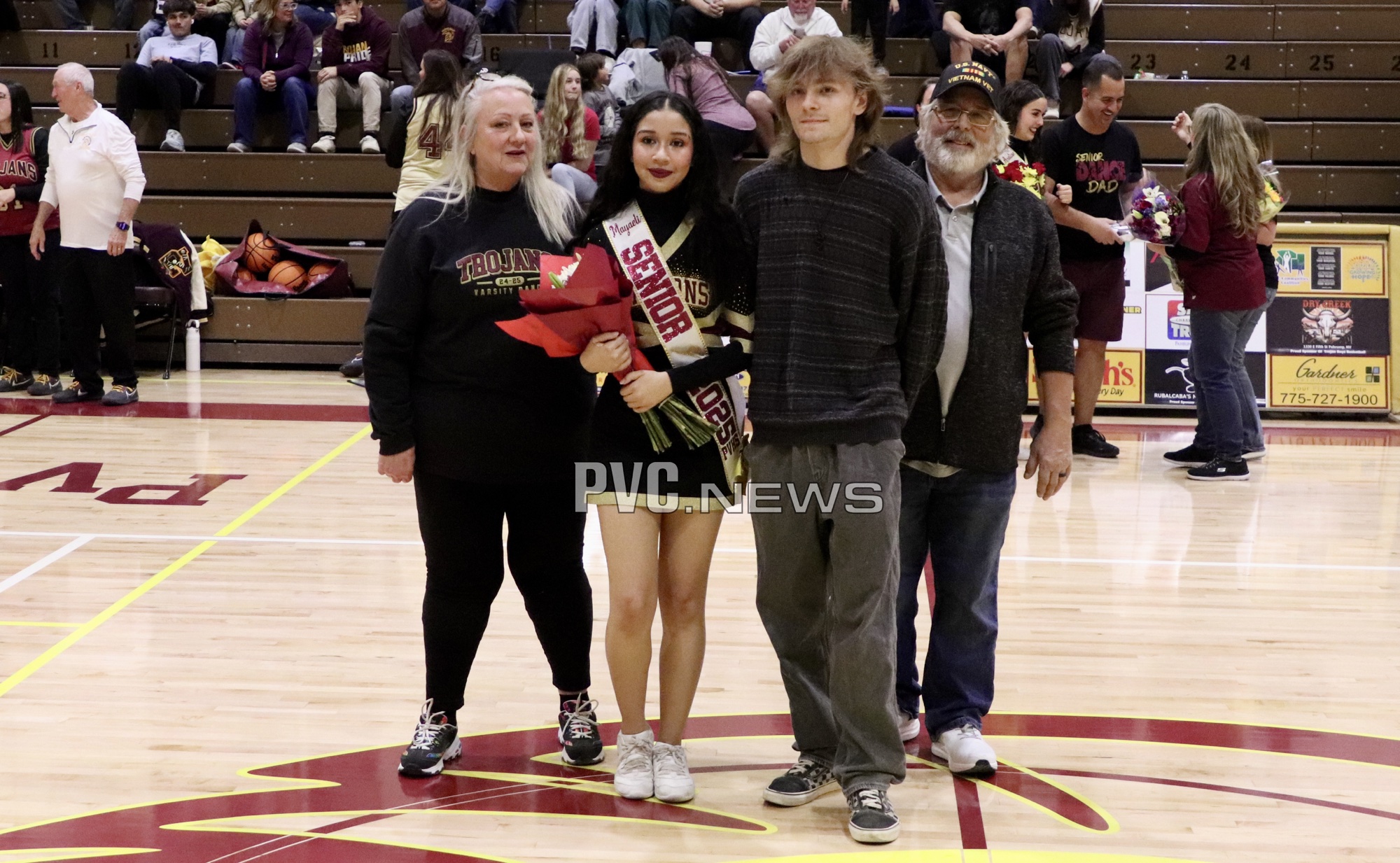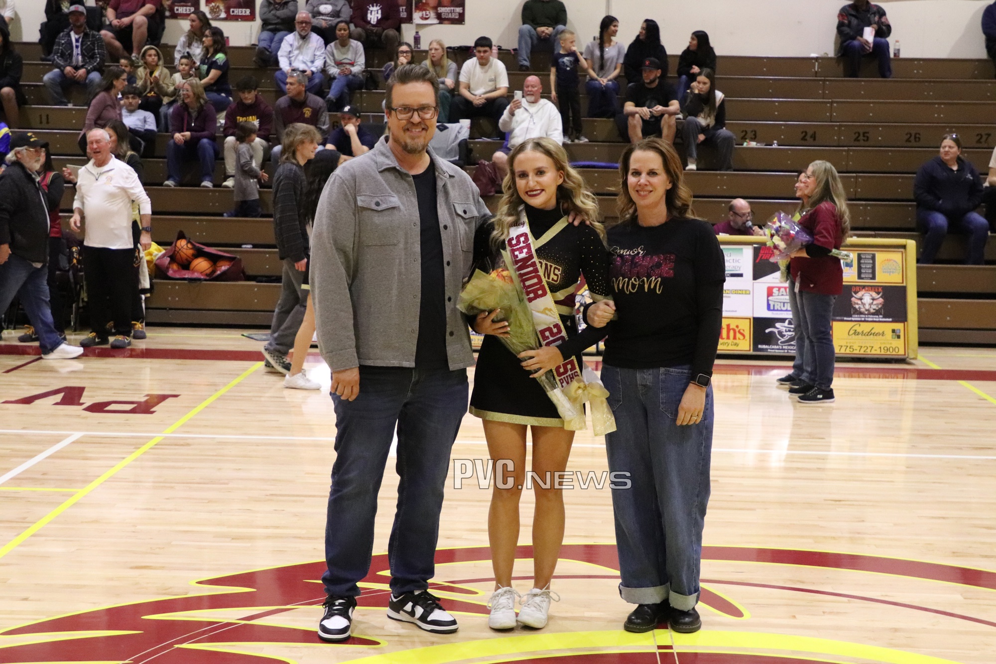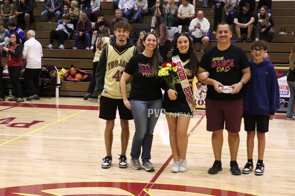 The Pahrump Valley High School Dance Team and Cheer Team took center stage during the girls’ basketball game on Friday, February 7, as they were honored for Senior Night. Before the game began, the graduating seniors from both teams were recognized for their dedication and contributions, receiving well-deserved applause from the crowd.