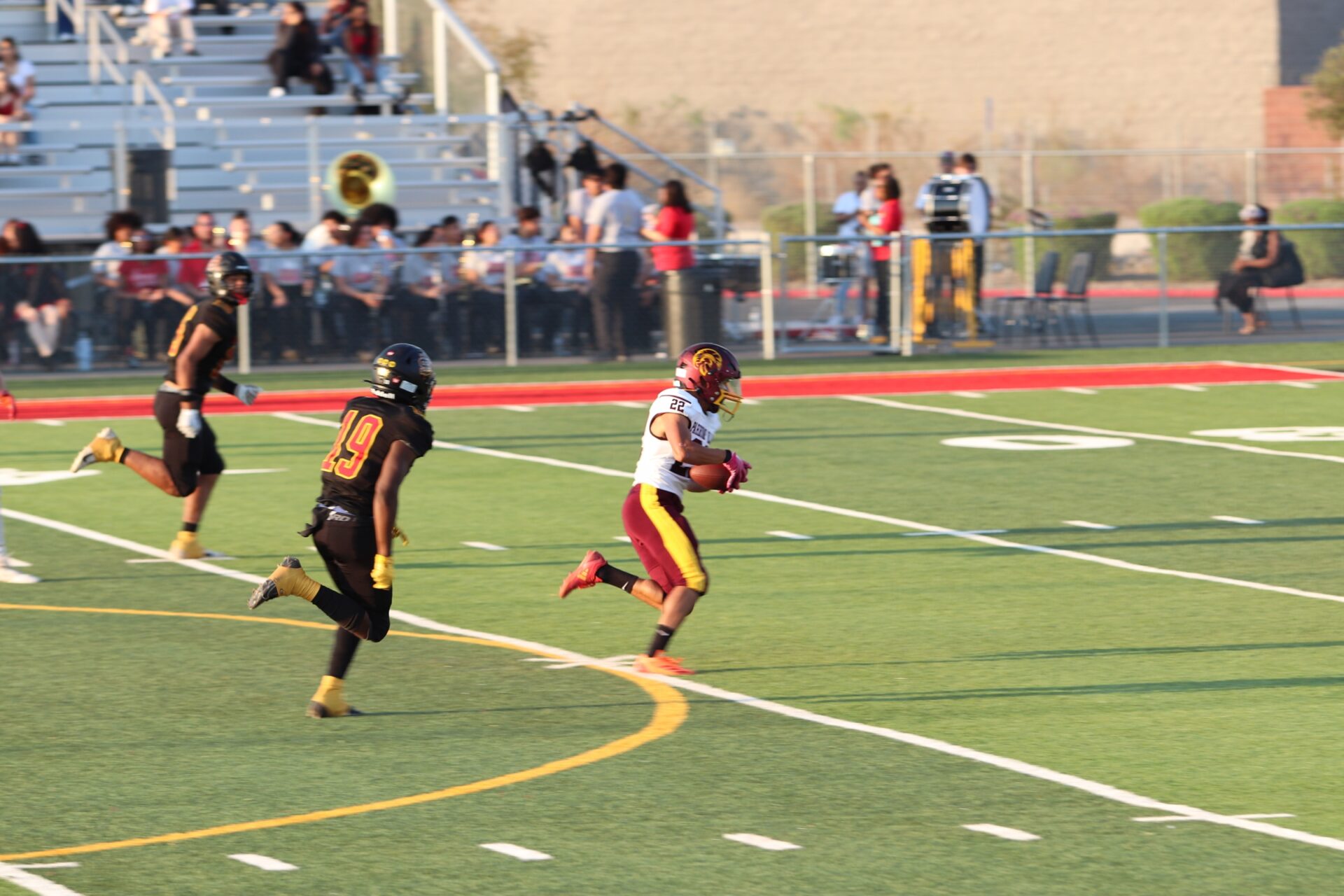 Ben DeSantiago made an immediate impact, catching a touchdown pass on the Trojans’ first offensive play from scrimmage, setting the tone early in the game. Austin Alvarez also made an impact on both sides of the ball, contributing a rushing touchdown and a receiving touchdown. On the defensive side, Iyan Bosket had a standout performance, helping to anchor the defense against a tough opponent.