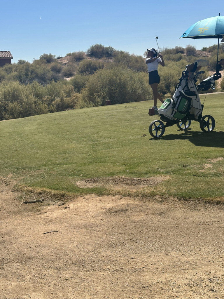 The event saw top talent from several schools, with Abigail Llewellyn from Virgin Valley finishing in first place with a score of 80, and Iris Sim from Meadows closely following in second place with an 86. Despite the tough competition, Zuniga’s steady play and focus throughout the day earned her a spot among the top finishers.