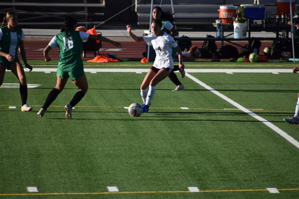 The Varsity game highlighted areas for improvement, as the team struggled against the seasoned Virgin Valley squad. With only five returning players, the experienced members faced the challenge of guiding newer teammates through the faster-paced game. “The Varsity game showed us more of what we need to work on,” Carlson noted. “Natalie Soto and Khylar Park took charge of the defensive line, while Natalia Vallin and Ryleigh Denton led the midfield.”