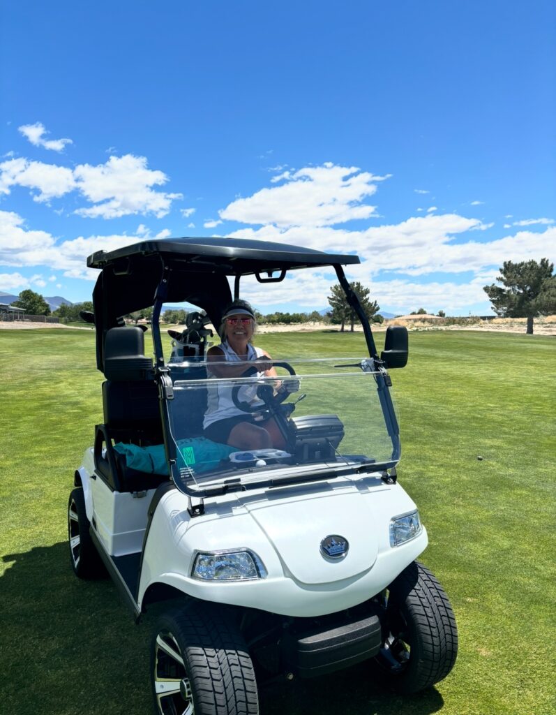 Her son Nick initially pursued dentistry but fell in love with chemistry and graduated from Southern Utah University with both a chemistry and biology degree.  He later received his master’s degree in Material Science Engineering from Johns Hopkins University. He moved from Washington DC to Denver and is now Managing the Energetics Engineering Department for his organization. Elliott took a winding path, earning his biology degree from Southern Utah University. Ultimately Elliott found his passion in becoming a golf professional. “He’s an incredible teacher, and I get so many compliments on his knowledge, patience, and skill.  He enjoys giving golf lessons to the young and old. I love that he and his beautiful wife Cierra have made Pahrump their home.”
