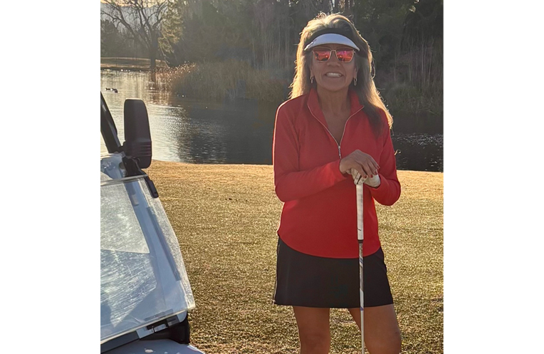 Her personal life is full of joy.  “My daughter, Hollie is 45, (grandkids Harper is 10, Logan is 7), Nick is 35, and Elliott is 31.  I’m fortunate to be living my best life at 62.  I love to travel, paint, cross-stitch, read, and especially golf, I golf three to four times a week if possible, and I walk daily.  I go to the gym when I can, but I prefer to be outside.  I love walking the paths at Mountain Falls—It’s beautiful.”