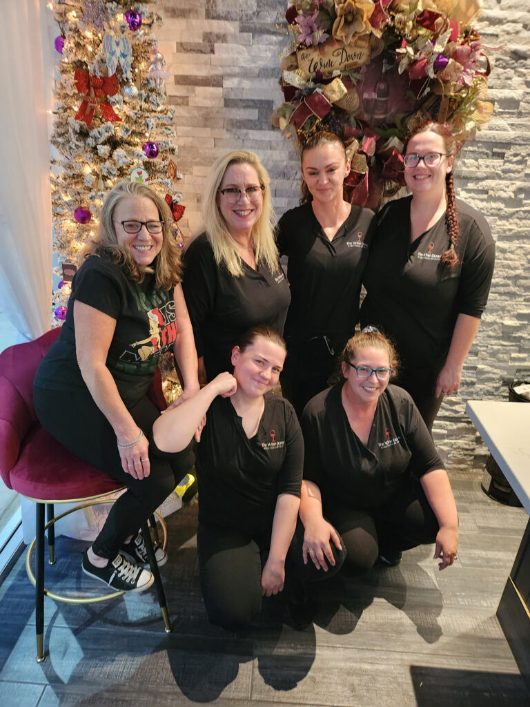 The name, The Wine Down, was suggested by their eldest daughter, Ashley, a detective in Las Vegas. “She said, ‘Mom, what about The Wine Down?’ and from there, it just took on its own persona,” Joelle explains. The concept behind the name reflects their vision of a relaxing, welcoming space—”If a spa and a bar had a baby, it would be The Wine Down.”