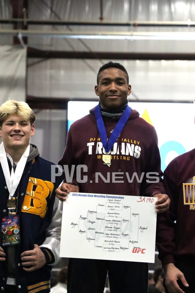 The Pahrump Valley High School wrestling team capped off an incredible season with a strong showing at the 3A State Tournament in Fallon, Nevada, on February 7-8. Ten talented Trojan wrestlers qualified to compete at the highest level, showcasing their dedication, grit, and determination against the best in the state.