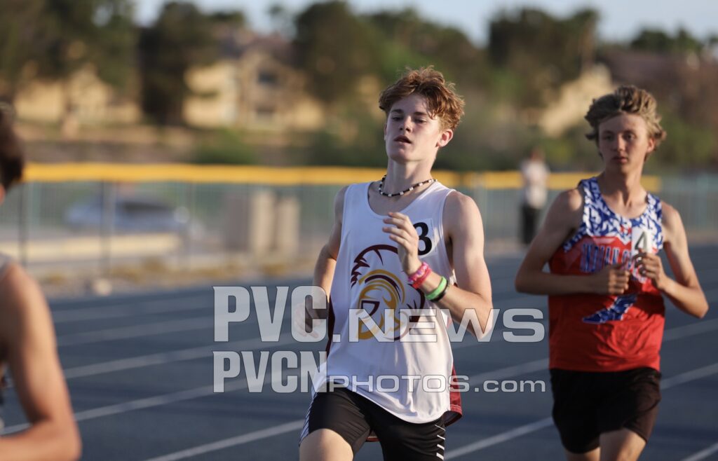In distance events, Antonio Veloz took first in the 800m with a time of 2:12.59, while Valery Romero won both the girls 400m and 800m events. Joaquin Flores delivered a standout day, winning both the 1600m and 3200m runs. Veloz placed second in the 1600m, making it a one-two finish for Pahrump in that event.