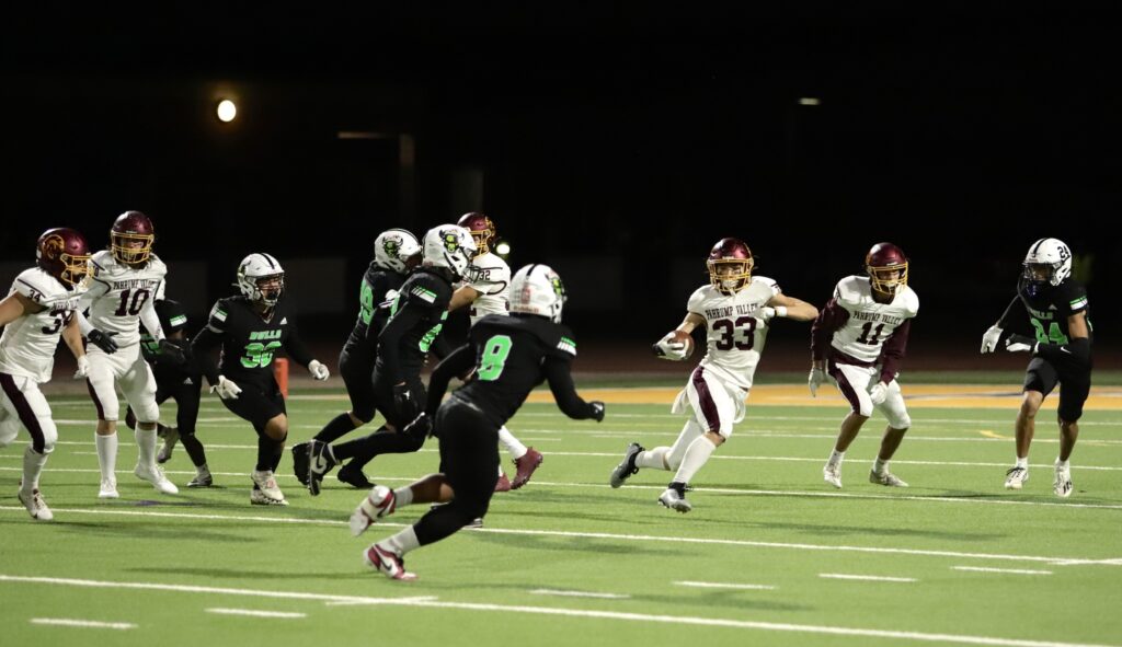 The Pahrump Valley High School Trojans wrapped up their 2024 football season with a hard-fought playoff game against the SLAM Bulls on Friday, November 8th, marking the end of a season defined by growth, resilience, and the promise of an exciting future. Despite a final score of 56-33, the Trojans’ spirit and determination shone through as they battled one of the top teams in the league.