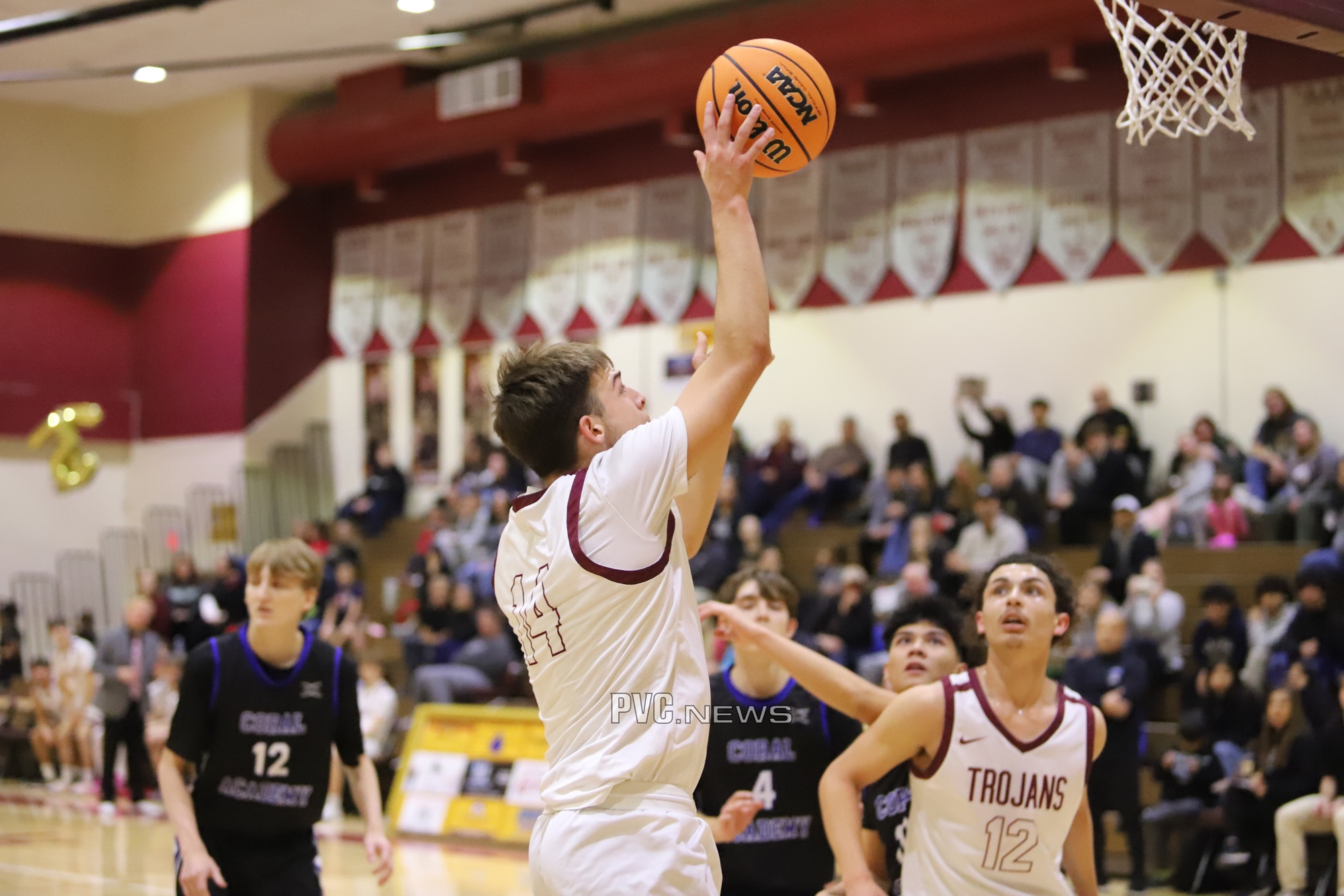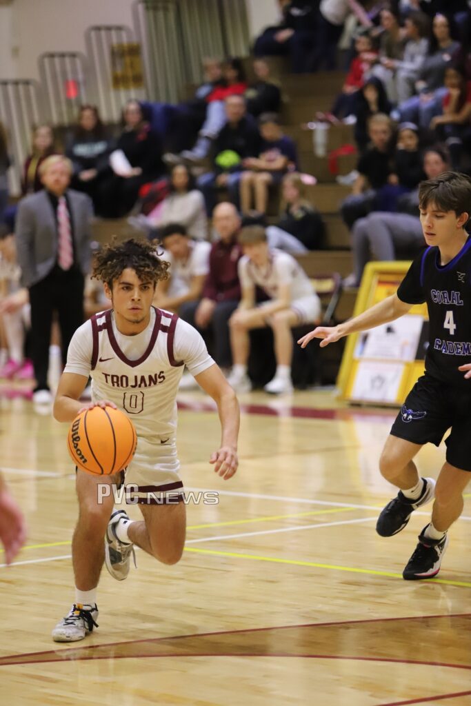 The Pahrump Valley High School varsity boys’ basketball team faced off against the Coral Academy of Science Las Vegas Falcons on Tuesday, January 21, in a thrilling home game that kept fans on the edge of their seats until the final buzzer. Despite a valiant effort by the Trojans, the Falcons edged out a 56-55 victory in the final moments.