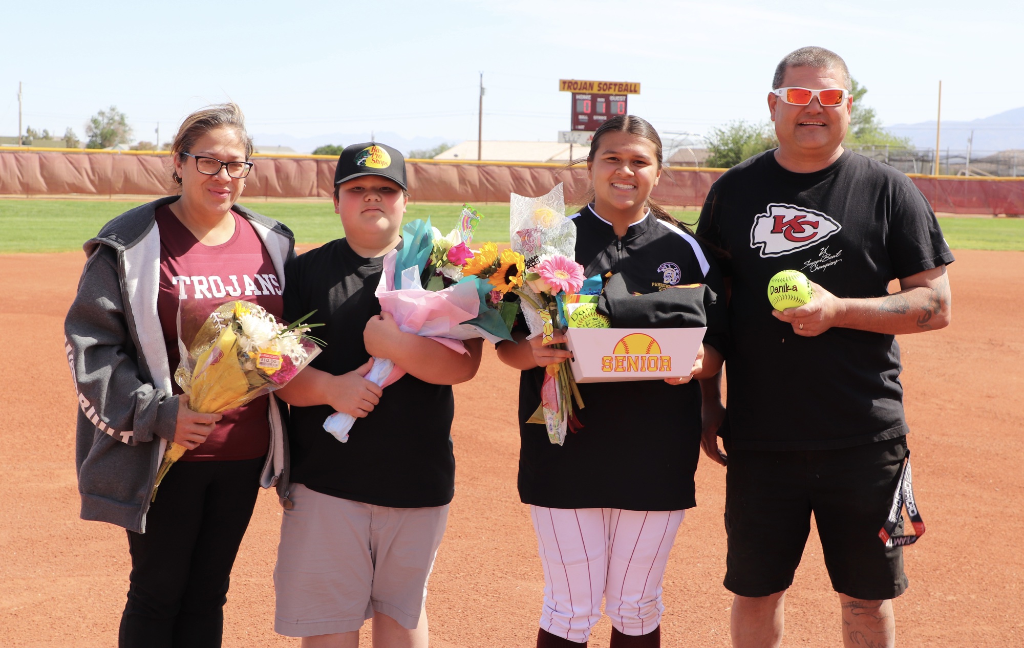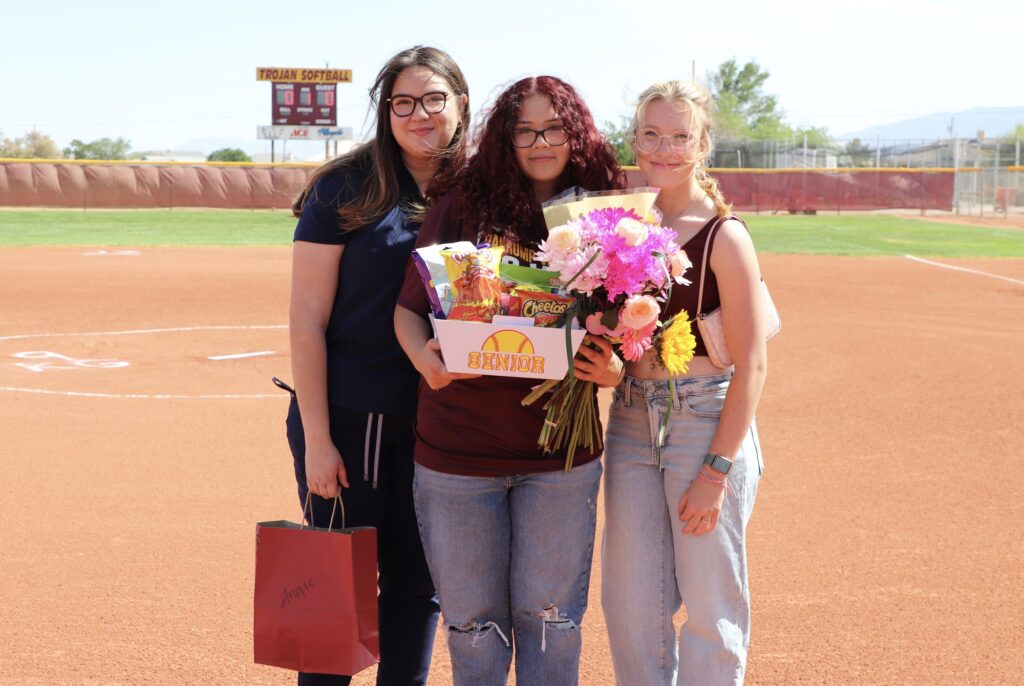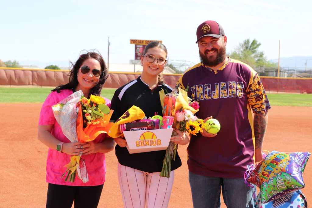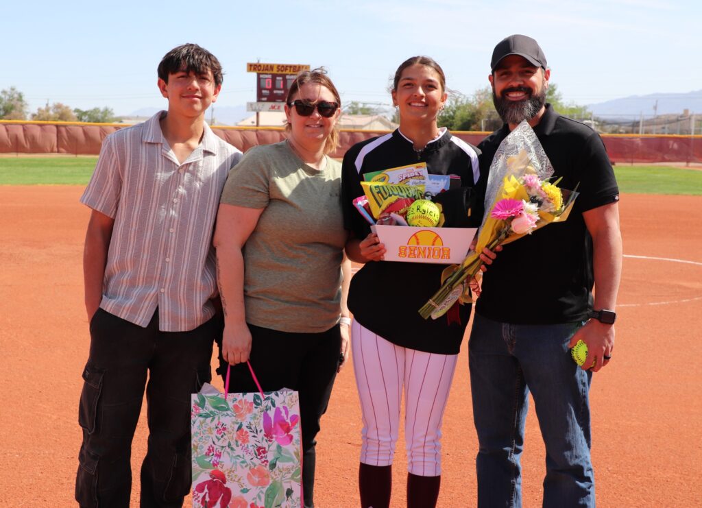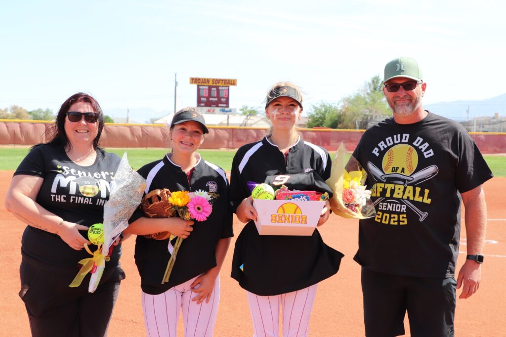 The Pahrump Valley High School Trojans softball team marked a special occasion with a commanding victory on Friday, April 25, defeating the Valley High School Vikings 15-0 at home. The evening was filled with emotion and excitement, as the team honored its senior players in a heartfelt ceremony before the first pitch.