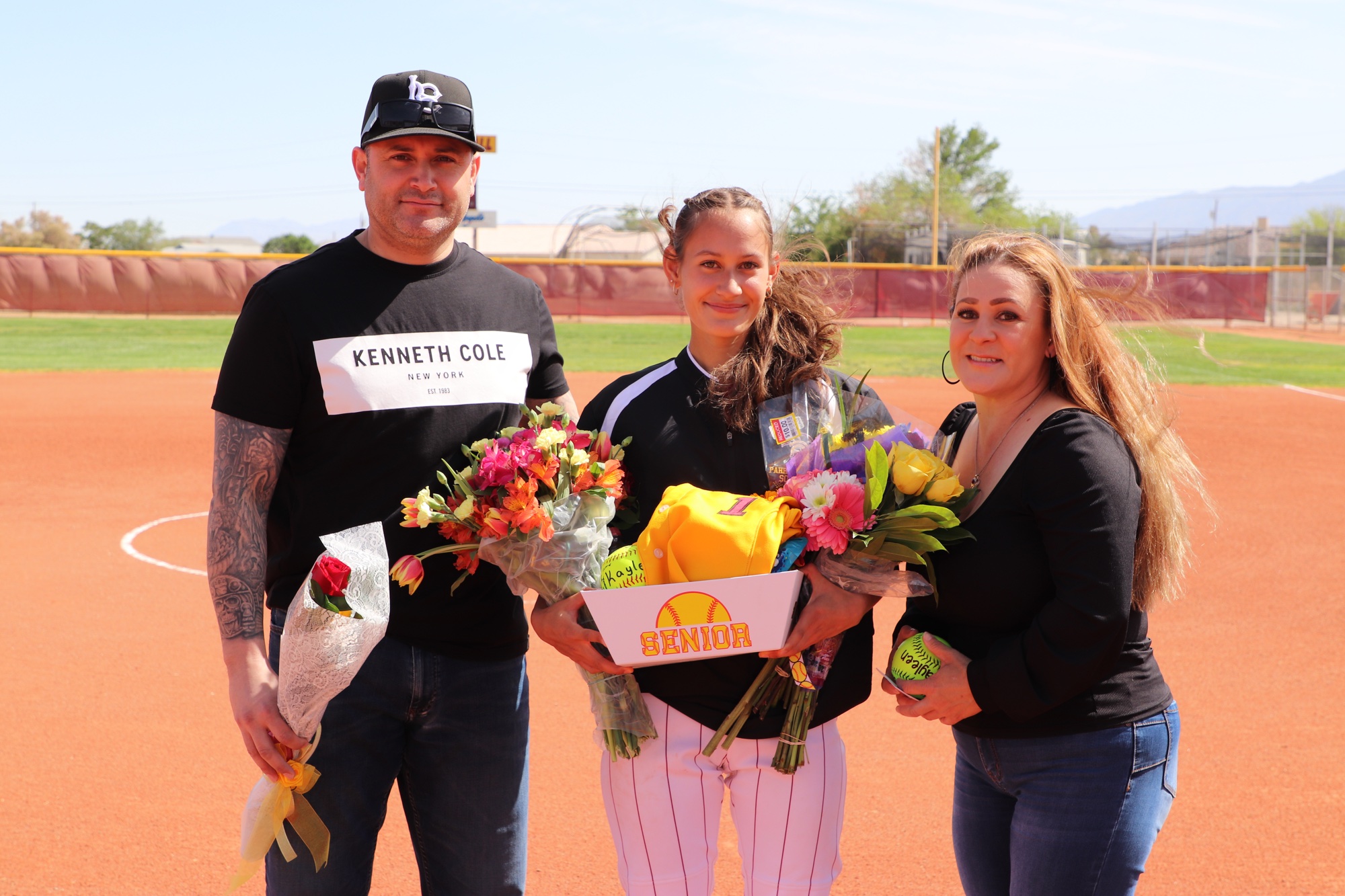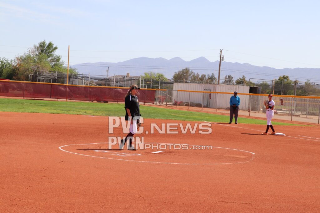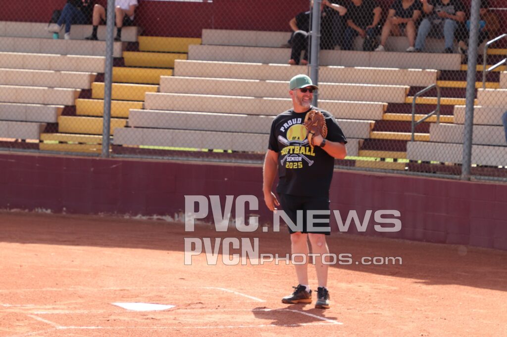 Seniors Kayleen Carranza, Ava Chiancone, Danika Cox-Hosino, Ryleigh Denton, and Kayla Glenn, along with the team’s senior manager Angelyce Castillo, were recognized for their contributions to the program. Each senior was walked out onto the field by their parents and family members, greeted by teammates, friends, coaches, and fans who applauded their dedication and achievements over the years. The moment was made even more memorable when senior Kayla Glenn threw out the ceremonial first pitch, tossing the ball to her father, David Glenn, in a touching tribute to family support behind the players’ success.