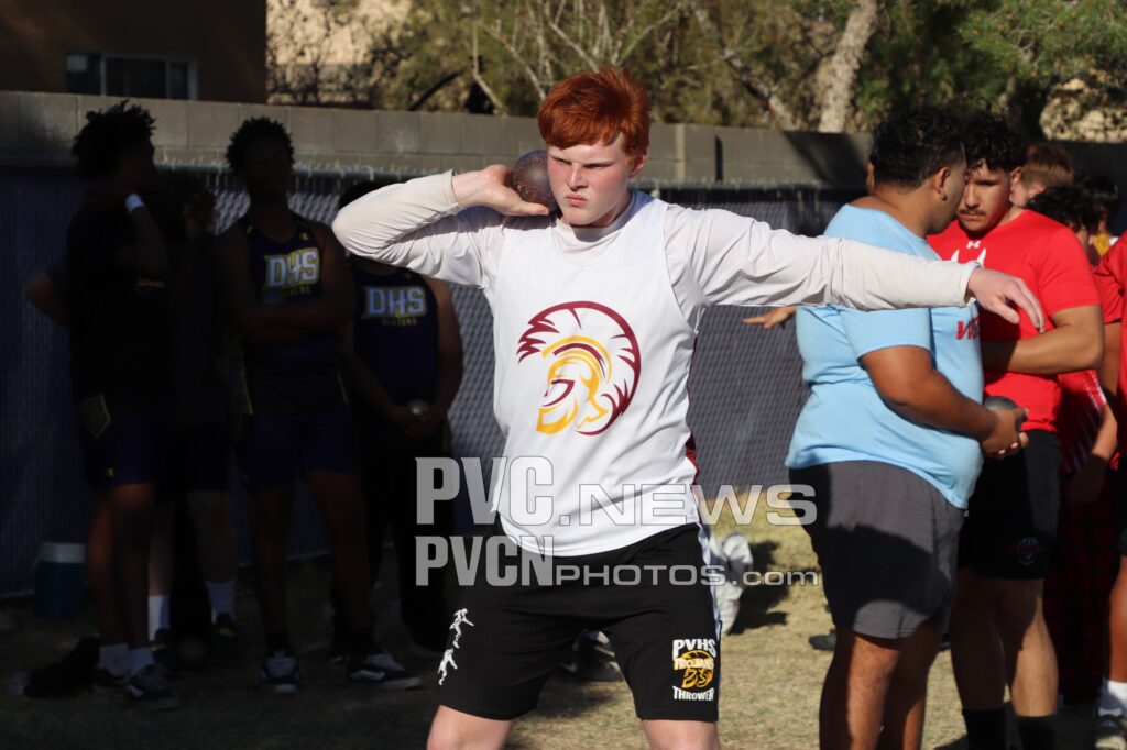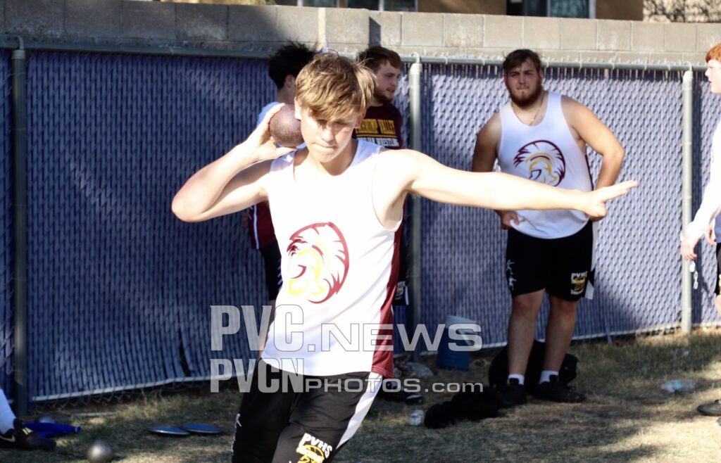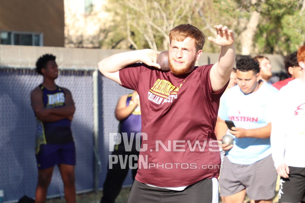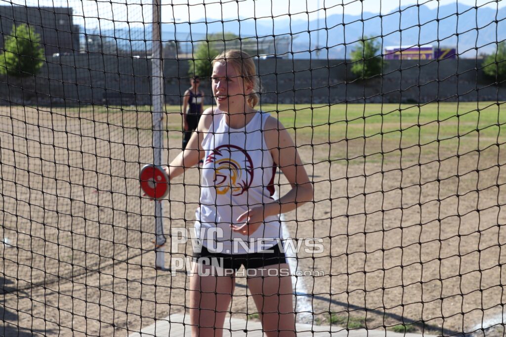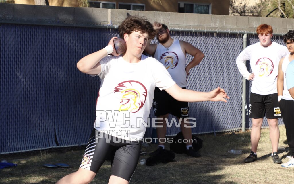 Field events proved to be a major strength for Pahrump Valley. In shot put, Cailyn Marsh led the girls with a throw of 23’3”, while Hunter Mellinger threw 40’11” to place second in the boys’ competition. Sonny Skinner, Anthony Hunt, and others added depth. In discus, the boys nearly swept the podium with Brenden Thorn and Sonny Skinner taking second and third, respectively, and four more Trojans placing solid marks.