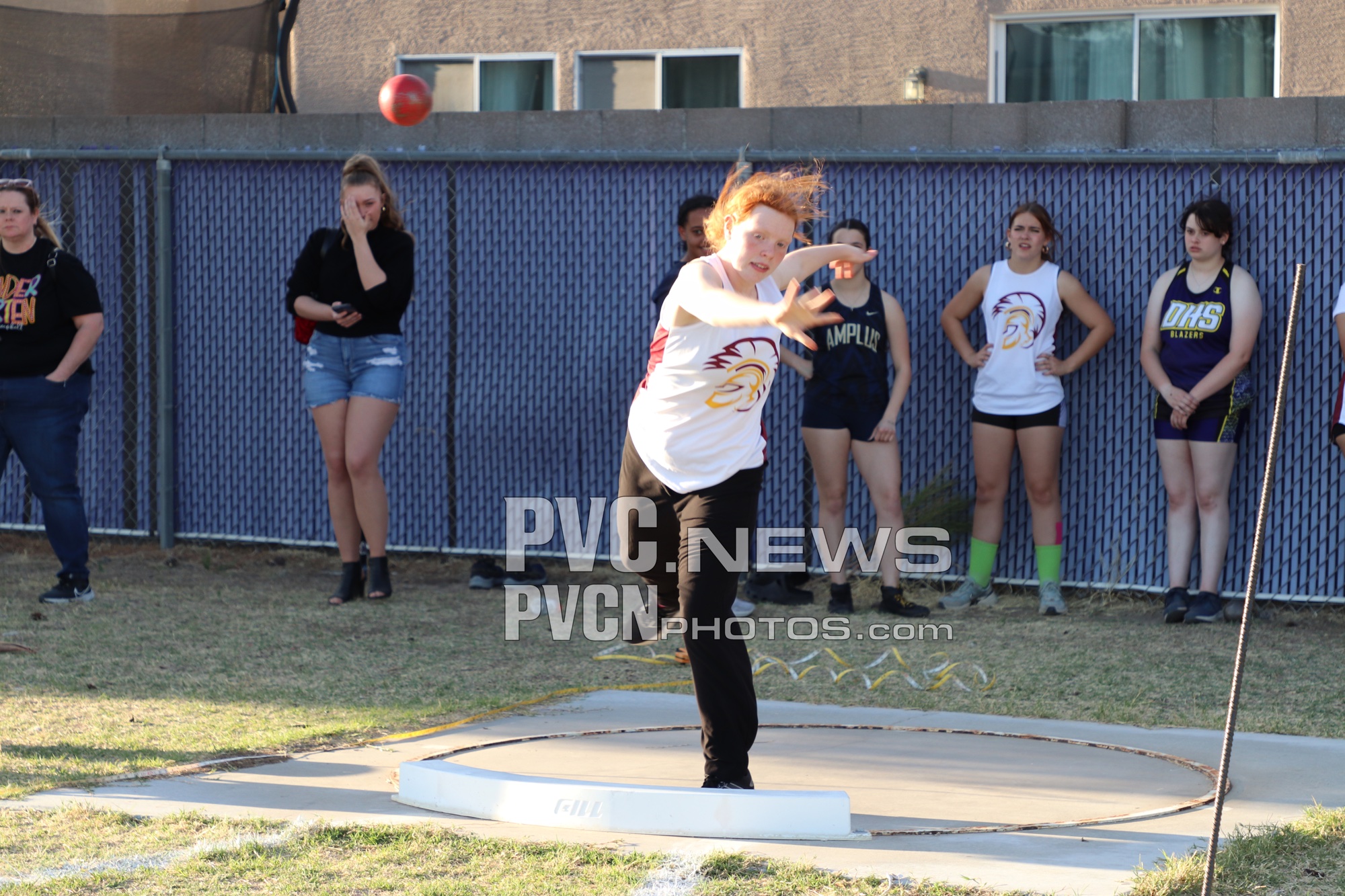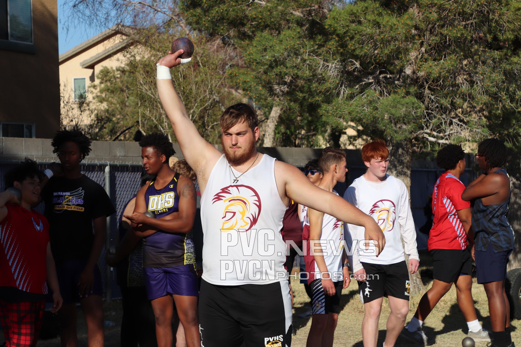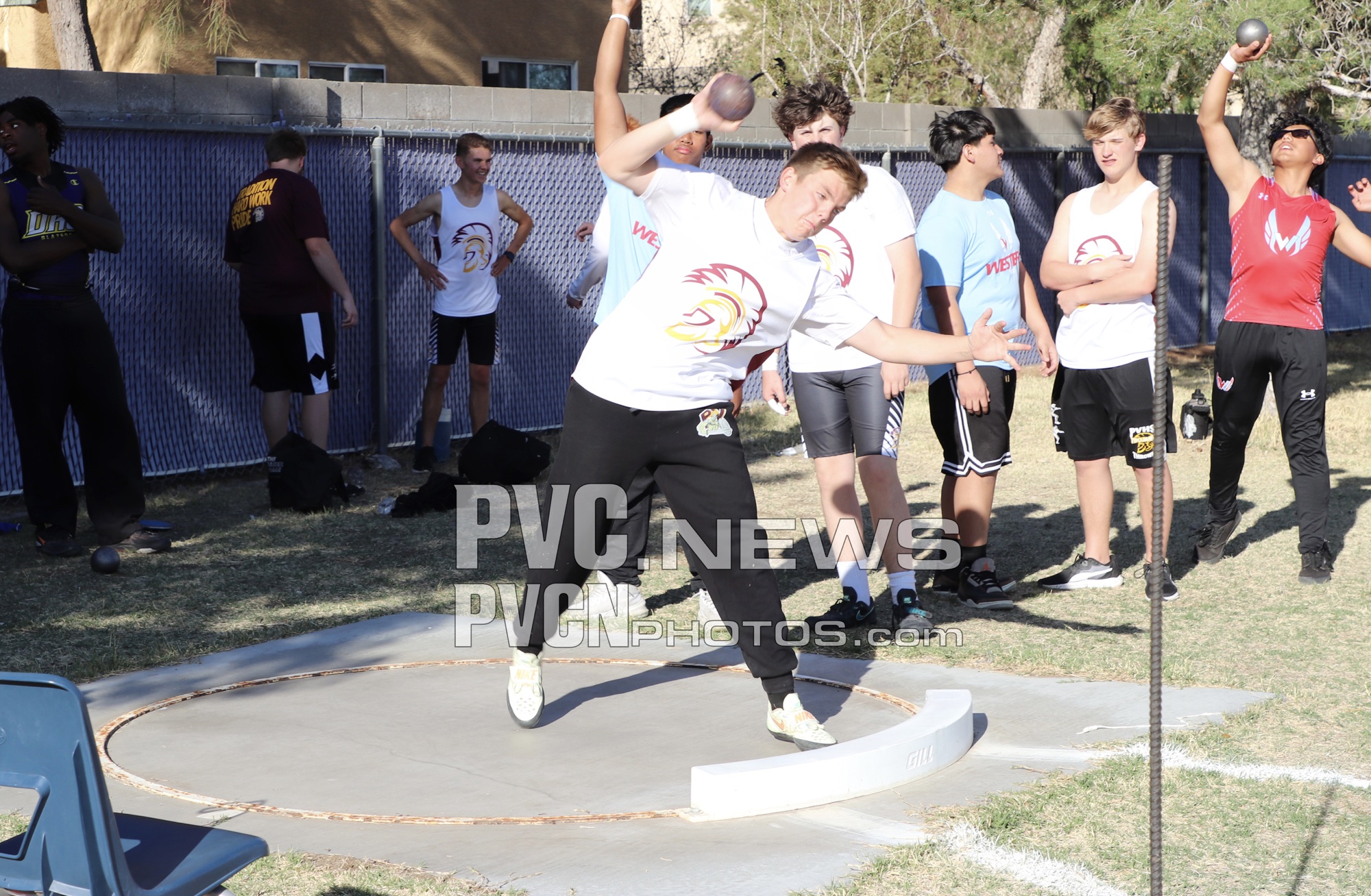 Field events proved to be a major strength for Pahrump Valley. In shot put, Cailyn Marsh led the girls with a throw of 23’3”, while Hunter Mellinger threw 40’11” to place second in the boys’ competition. Sonny Skinner, Anthony Hunt, and others added depth. In discus, the boys nearly swept the podium with Brenden Thorn and Sonny Skinner taking second and third, respectively, and four more Trojans placing solid marks.
