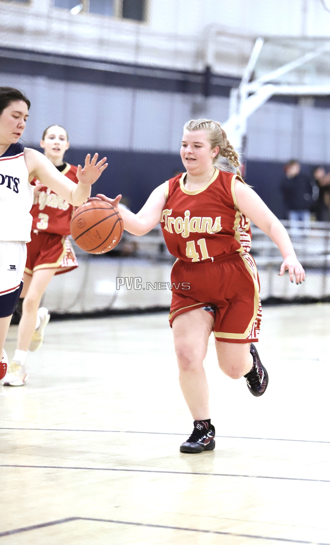 In the second quarter, the Trojans extended their lead with key plays from Ryleigh Denton and Nala Dalton. Denton’s three-pointer from the right side and Dalton’s rebound-and-putback highlighted a quarter where PVHS outscored AHA 14-0, taking a 30-6 advantage into halftime.