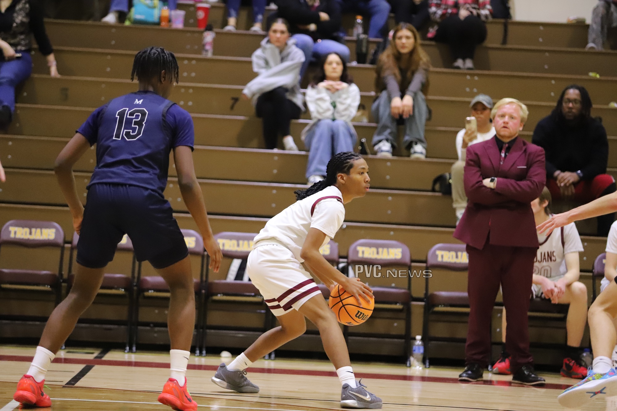 The Pahrump Valley High School varsity boys’ basketball team faced a formidable challenge against The Meadows Mustangs on Thursday, January 16th, at home. Although the Trojans fell 71-44, they showed tenacity and teamwork, battling hard throughout the game and refusing to back down against one of the top teams in their division.