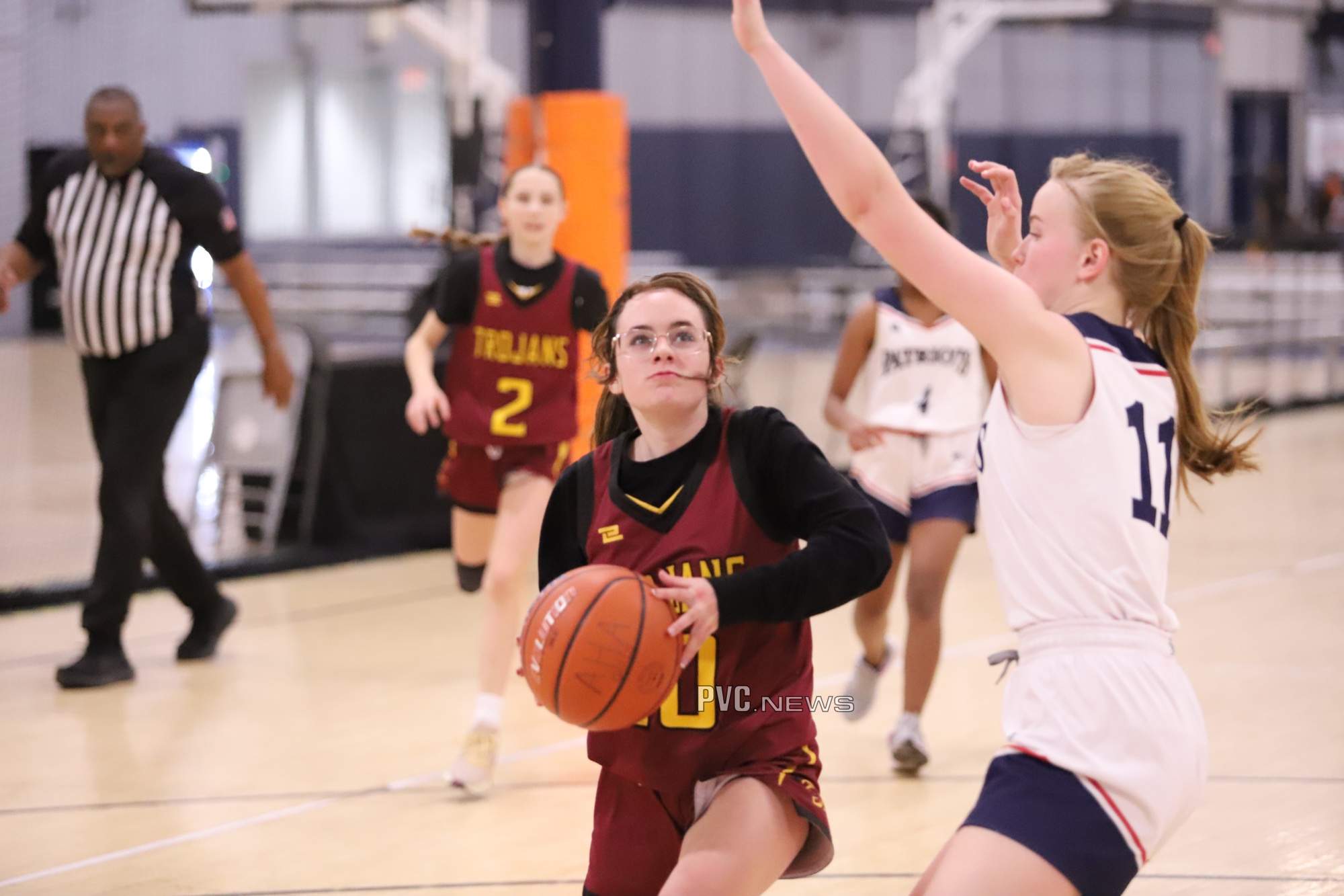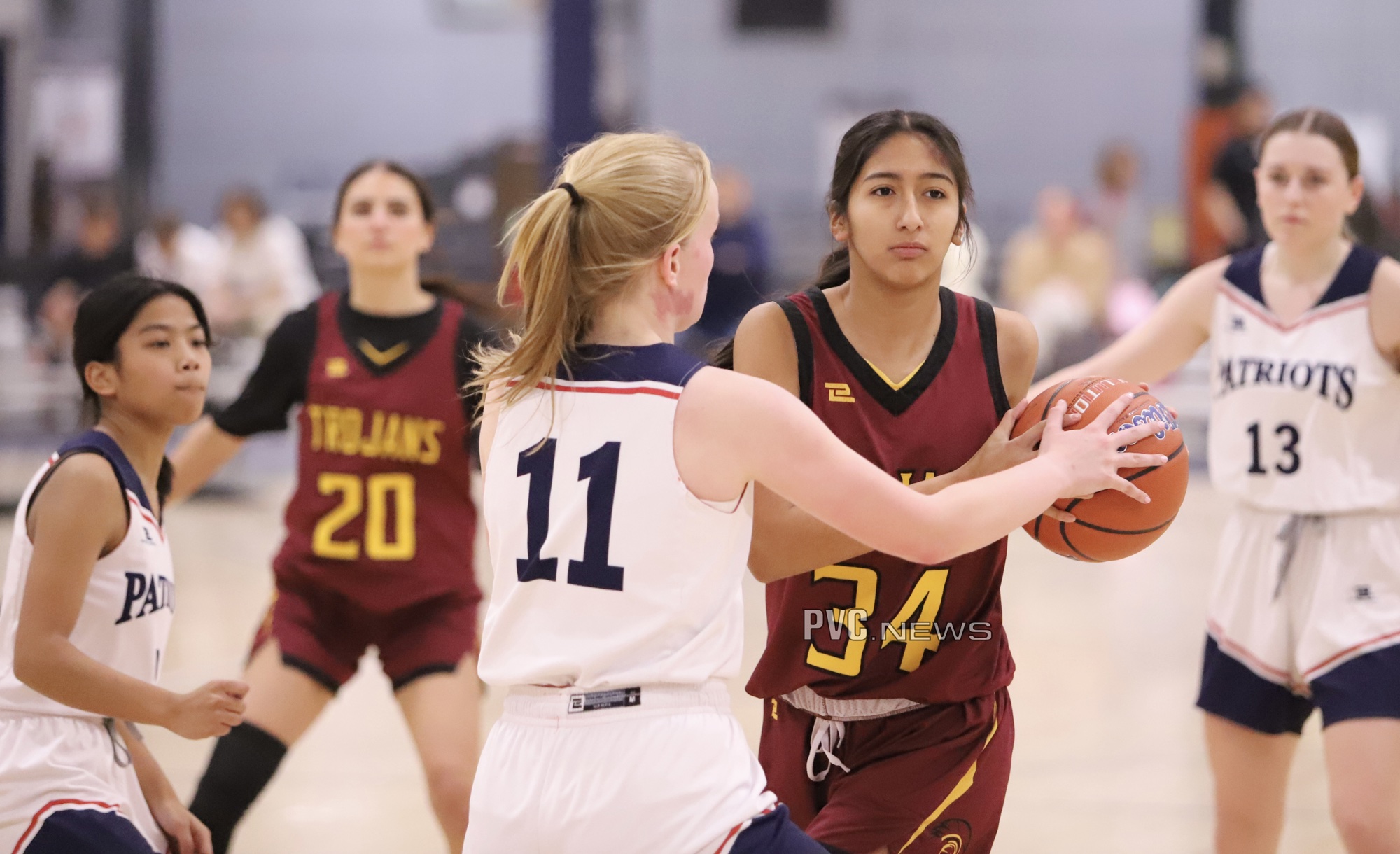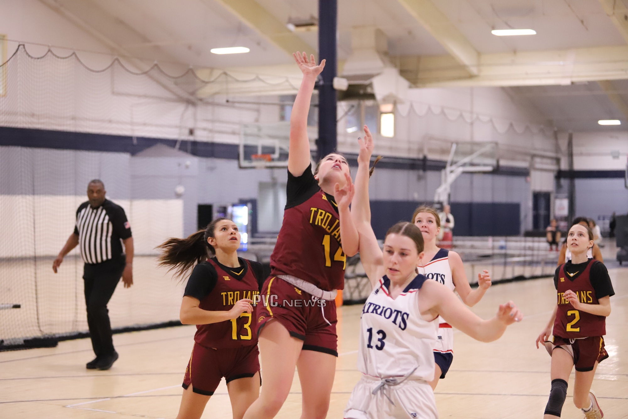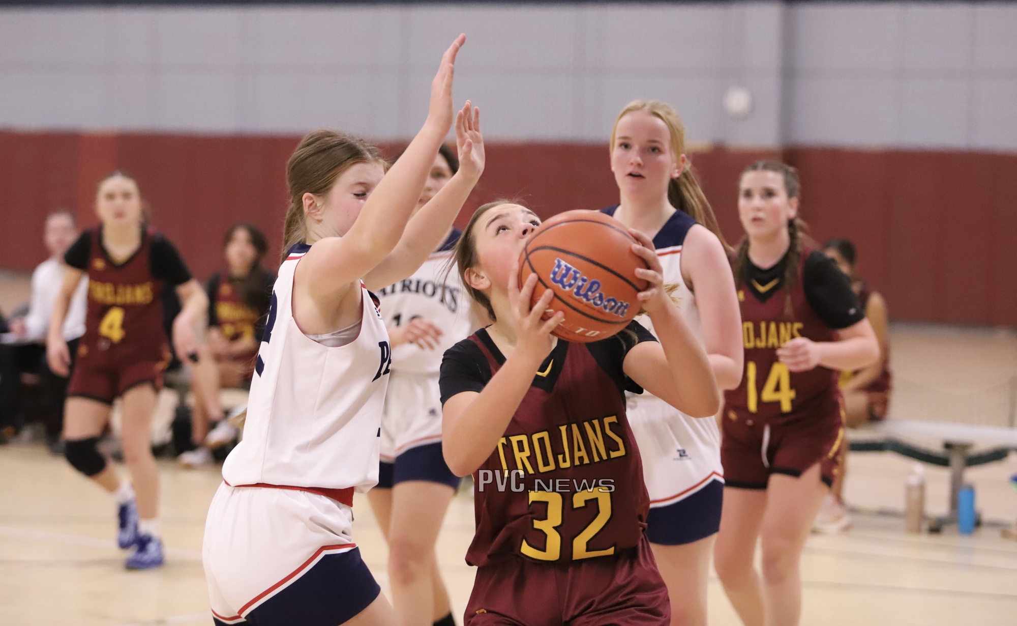 The Trojans started strong, holding the Patriots scoreless in the first quarter while putting up 8 points of their own. Sydney Crotty led the charge with four points, including two free throws and a two-point field goal. Cindal Monahan and Julie Briggs each added a two-point basket to contribute to the early lead.