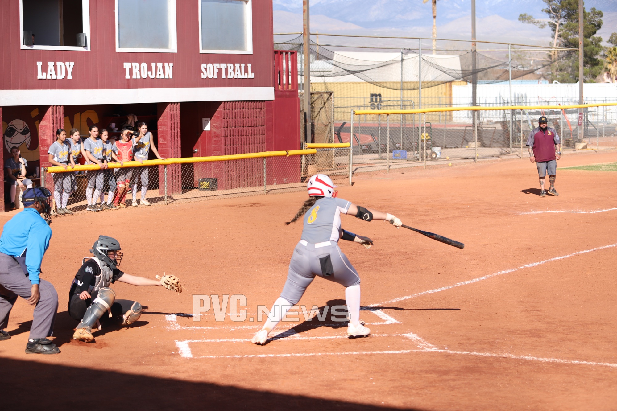 The Pahrump Valley High School Trojans softball team secured a hard-fought 6-4 win over the Virgin Valley Bulldogs on Monday, March 10, 2025, at home. The Trojans jumped out to an early lead, thanks to key hits and aggressive base running, and held off a late-game push from the Bulldogs with strong pitching and solid defense.