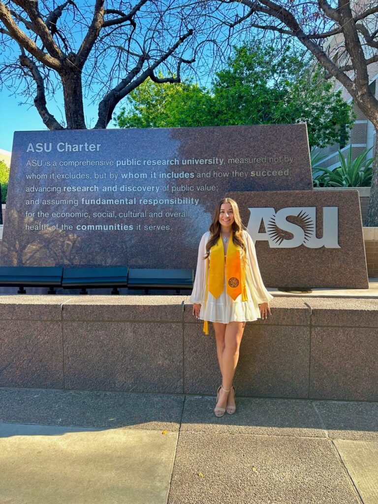 After high school, Virginia moved to Arizona to attend Arizona State University, where she pursued a major in biology with an emphasis in pharmacology and toxicology. She also minored in communications, a decision that would later prove invaluable in both her teaching and medical aspirations. During her college years, she met her best friend, Katie, who became an important part of her journey. Virginia believes that making meaningful connections and friendships along the way is essential and encourages others to go out and experience something new. Graduating magna cum laude in 2023, she consistently made the dean’s list and excelled academically while simultaneously gaining critical hands-on experience in the medical field.