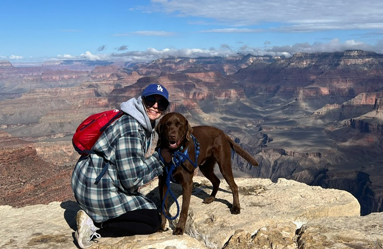 Outside of her academic pursuits, Virginia has a wide range of hobbies that help her stay grounded. She enjoys hiking with her dog, playing sports recreationally, and attending sporting events. A devoted sports fan, she follows Dodger baseball and NASCAR closely and is excited about an upcoming trip to Talladega for a NASCAR race.